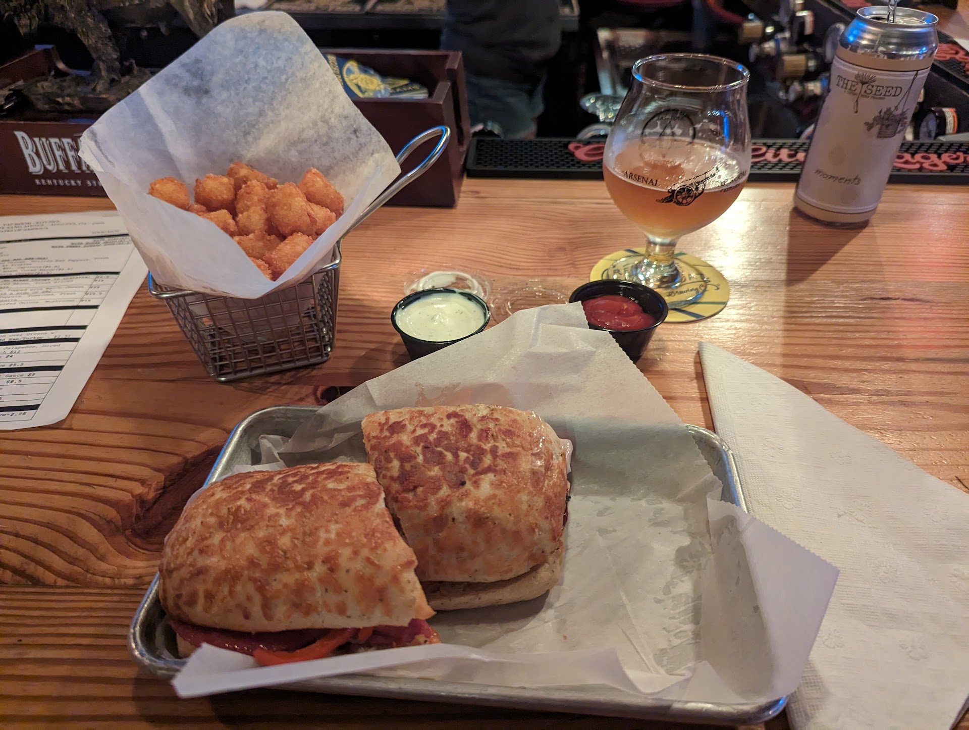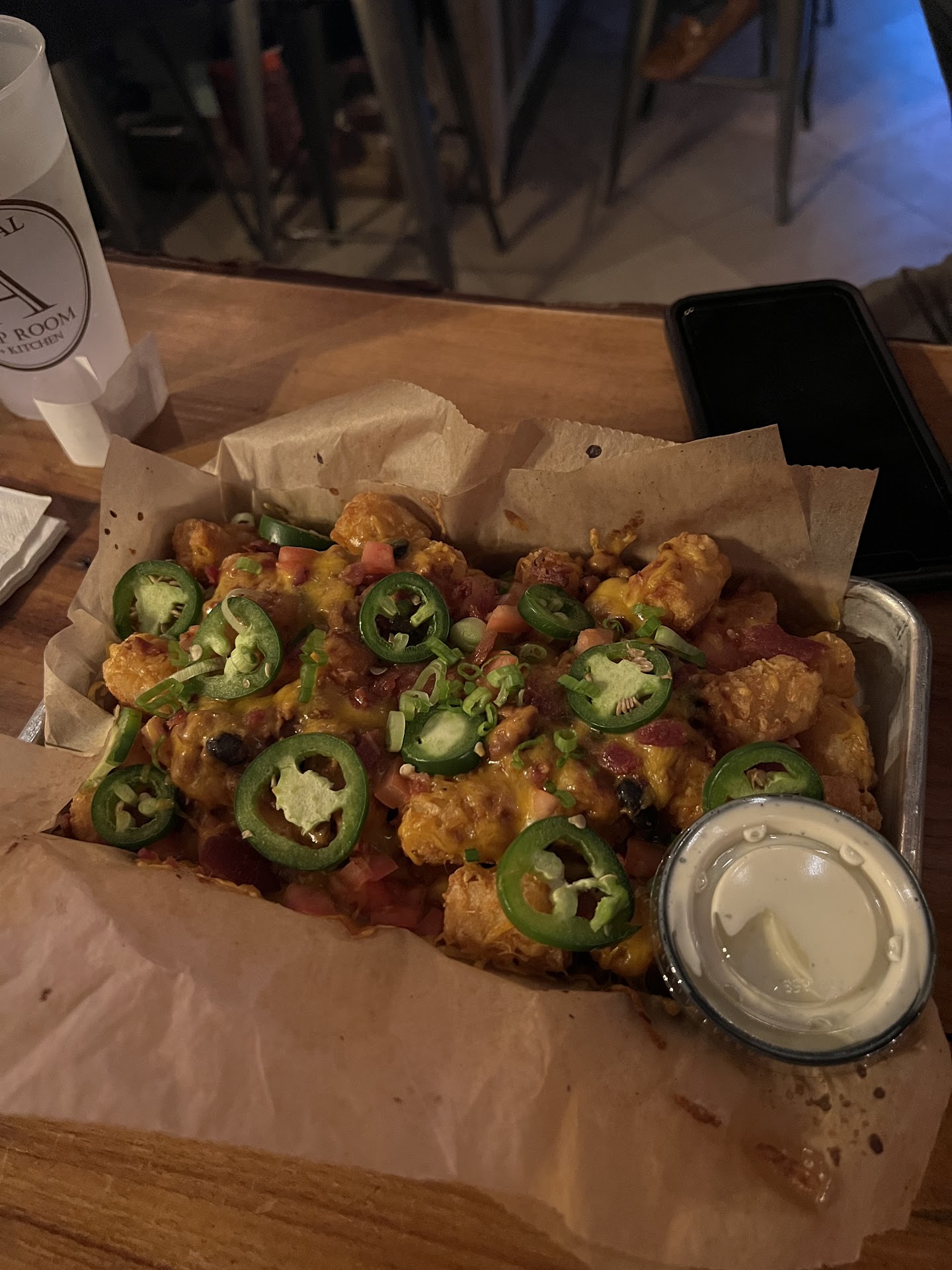 Read moreI have been here on several occasions and absolutely love the vibe of this taproom! They have comfortable sofa type lounge seating, bar seating, community table seating, barstool seating, and a beautiful, enclosed and heated anoutdoor patio seating. They have several beers on tap and in bottle/cans; all which you can view on the Untappd App! They also have a great wine list and full bar . Their food is also great. Today we shared the Loaded tater tots with ranch (cheddar, beef Chile, crumbled peppered bacon, fresh jalapeños, diced tomatoes, and chopped green onions) and they were crisp and perfect. Love the Chile and jalapeños that came with them. In past visits I have had their amazing seared ahi Tuna nachos with wonton chips (a chefs special), their fried pierogis and the arsenal grilled cheese which all have been delicious. I like this establishment so much that I came in to buy a gift card to give a friend of mine for Christmas! In the process they shared that they were offering an amazing deal on their gift cards for Christmas. if you buy a $50 gift card you get an additional $10 on that card or a separate card. We decided to use it for ourselves hence why we splurged on the loaded tots and couple of beers. They also are offering $20 gift card if you purchase $100 gift card. Amazing deals!