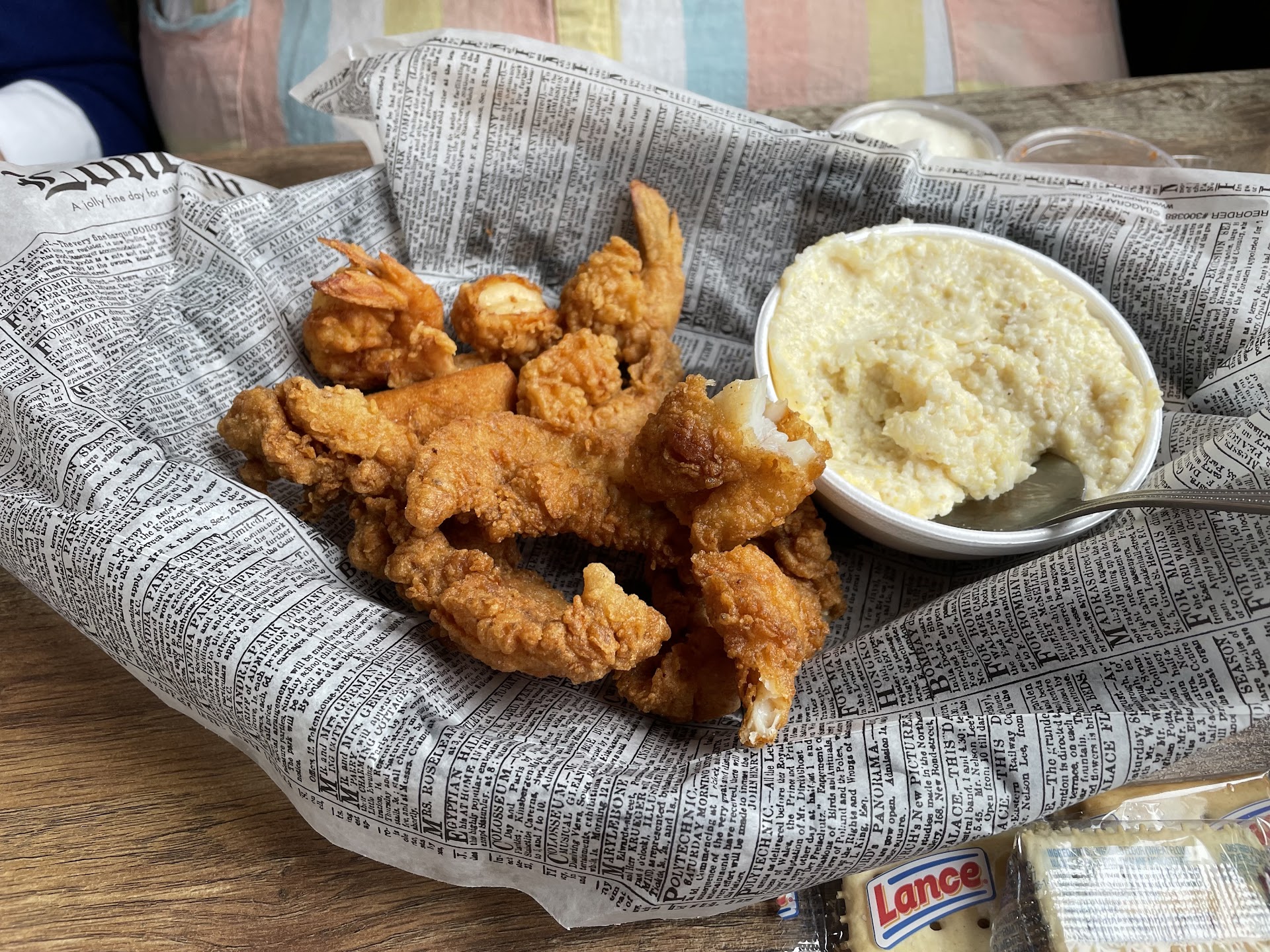 Ā Ā Ā Read moreWe called ahead to inquire if they were dog friendly and they said they were. Upon arrival we didnāt see any outdoor seating however. Imagine our surprise when we were seated in a fully enclosed air conditioned patio. Major props for allowing dogs. The service was average but the server couldnāt answer basic menu questions like is the slaw vinegar or mayo based and whether their sauces and dressings were made in house. The food was ok. The cole slaw is very sweet. No one at the table cared for the skin on mayo based potato salad. The fries were crinkle- my favorite- but a missed opportunity as they werenāt seasoned at all. Some Old Bay on them would have been amazing. Beamies cocktail sauce tasted homemade with a delightful punchy kick of horseradish and the blue cheese dressing was quite good as well. We had fried pickles and they too were average. Iāve had better and worse. My plate ($25) was a bit small I felt. It was a combo shrimp & oyster plate. The shrimp were WAY overcooked as in tough and chewy. The oysters were so small they tasted like globs of breading and nothing else. I tasted a scallop off someone elseās plate and they were far from fresh. Definitely tasted off. Had it been my plate I would have sent it back. The breading was done while the scallops were wet as it completely came off the scallop in one piece. None of the fried food was seasoned. The side salad was a fresh mixed lettuce and that was a pleasant surprise as Iām not a fan of iceberg nor romaine. It was dressed w 2 grape tomatoes, a sprinkle of cheese and some haphazardly cut cucumbers. One issue that simply reflects poor management and indifferent ownership is the side area directly next to the patio where the employees gather to smoke. There were several blackened disgusting mops present and that was a HUGE turn off. Absolutely gross and I hope like hell they donāt use those but Iām betting they do. This restaurant would benefit from a visit from Robert Irvine. Lots of potential if anyone actually cared to make some simple...