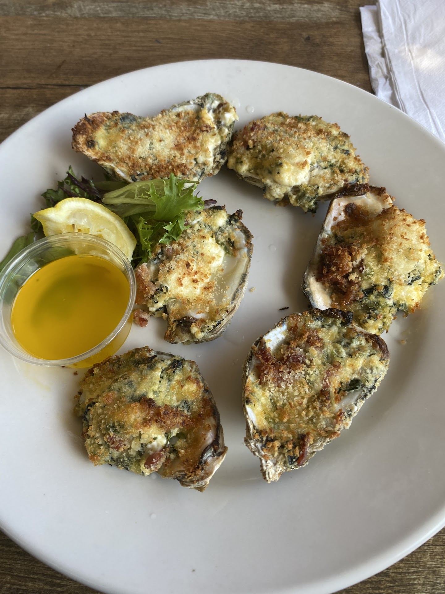 Ā Ā Ā Read moreWe called ahead to inquire if they were dog friendly and they said they were. Upon arrival we didnāt see any outdoor seating however. Imagine our surprise when we were seated in a fully enclosed air conditioned patio. Major props for allowing dogs. The service was average but the server couldnāt answer basic menu questions like is the slaw vinegar or mayo based and whether their sauces and dressings were made in house. The food was ok. The cole slaw is very sweet. No one at the table cared for the skin on mayo based potato salad. The fries were crinkle- my favorite- but a missed opportunity as they werenāt seasoned at all. Some Old Bay on them would have been amazing. Beamies cocktail sauce tasted homemade with a delightful punchy kick of horseradish and the blue cheese dressing was quite good as well. We had fried pickles and they too were average. Iāve had better and worse. My plate ($25) was a bit small I felt. It was a combo shrimp & oyster plate. The shrimp were WAY overcooked as in tough and chewy. The oysters were so small they tasted like globs of breading and nothing else. I tasted a scallop off someone elseās plate and they were far from fresh. Definitely tasted off. Had it been my plate I would have sent it back. The breading was done while the scallops were wet as it completely came off the scallop in one piece. None of the fried food was seasoned. The side salad was a fresh mixed lettuce and that was a pleasant surprise as Iām not a fan of iceberg nor romaine. It was dressed w 2 grape tomatoes, a sprinkle of cheese and some haphazardly cut cucumbers. One issue that simply reflects poor management and indifferent ownership is the side area directly next to the patio where the employees gather to smoke. There were several blackened disgusting mops present and that was a HUGE turn off. Absolutely gross and I hope like hell they donāt use those but Iām betting they do. This restaurant would benefit from a visit from Robert Irvine. Lots of potential if anyone actually cared to make some simple...