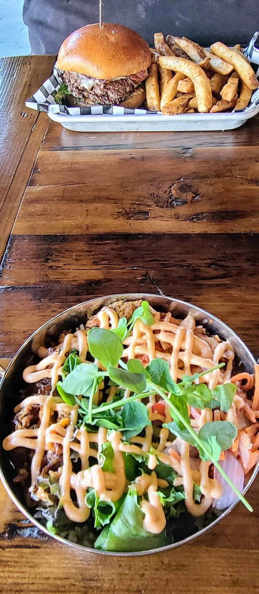 We initially were hesitant on going there because my husband thought the pizza ideas they have are odd. Mashed potato pizza? My husband wasn't all for that but I thought weird concoctions could be a great experience. I dragged him into going. We both absolutely loved it. I didn't have the mashed potato pizza this time but I will next time. I got a regular slice of pizza and the dough was amazing. I usually never eat the crust but this place has the best thin crust dough I've ever had. I also had the beef bowl and that was definitely delicious and very filling, I had them add extra spice, soooo good. My husband had a burger with fries and he said that burger would even beat Gordon Ramseys Burger we had tried in Boston, so that's saying a lot. I'm unsure if they just had a really good cook on shift that day or if that's how it always is there but my husband was very pleased with his lunch.