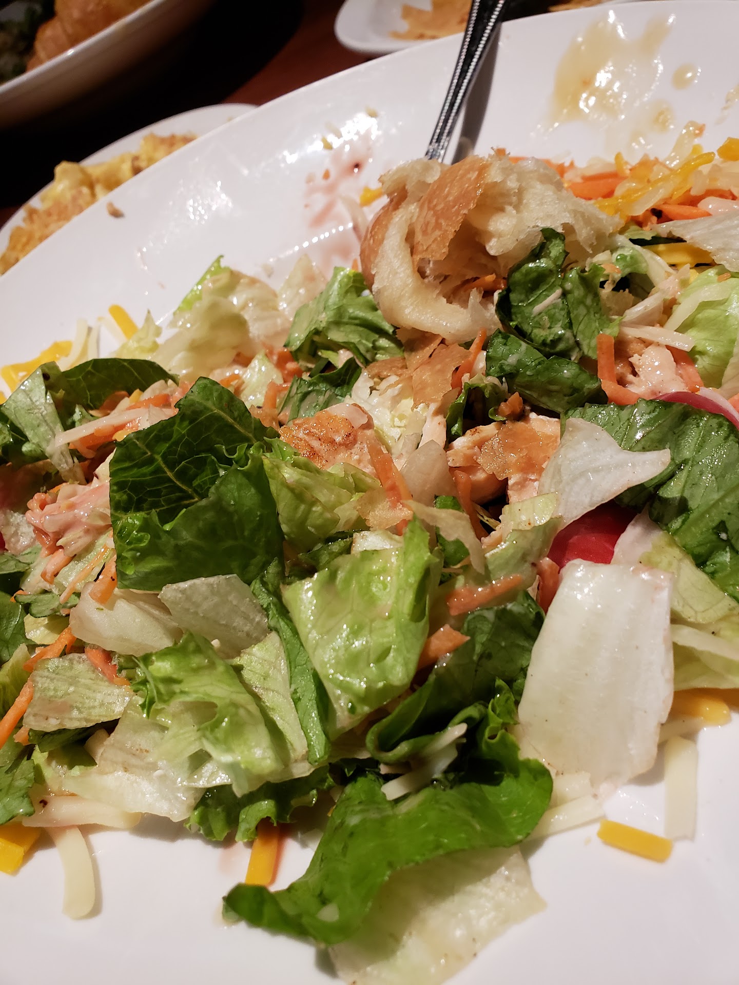 Read moreFirst bad experience at Cheddar's and I'm still SMH! The restaurant was not busy and we were seated immediately...our server, Stacy took our drink order a few minutes after sitting down gave us some time to look at the menu. I ordered an appetizer and wanted to try the new blackened salmon salad (keyword BLACKENED). I usually take pics of my food to post on social media but I was hungry so I neglected to take a picture of my salad anywho...the blackened salmon salad was supposed to be fresh greens, tomatoes, carrots, parmesan cheese, glaze pecans, homemade croutons with pomegranate vinaigrette dressing. It's hard to tell (see pic) but I received a salad with fresh greens, cheddar and jack cheese, tomatoes, carrots and grilled salmon on the top. After I started eating I realize this is not what I ordered so I called Stacy over and told her my salad was not correct. I was explaining to her that I should have parmesan cheese and candied pecans and her response was "I don't know". So I asked her to check the menu she checked the menu and she agreed that the salad was wrong...but her solution to the problem was to bring me a side of Parmesan cheese and candied pecans I got the wrong salad it should have been replaced with the correct salad! my sister ordered a side of mac and cheese, so this is how it's normally served? (see pic) A manager is usually walking around checking to see if everything is okay but we never saw a manager...finished up the meal, left and I noticed most of the employees were outside congregating as opposed to being inside taking care of their customers...as for that Cheddar's I will never visit again! Stacy could have made our visit a lot better if she was a little bit more attentive to her customers...we had stacks of empty plates at the edge of the table, she didn't bother to pick them up, didn't bother to offer us dessert..it's like us being there was bothersome to her. My first job was a waitress so I know taking care of your customers, knowing your menu and making sure your customer's order is correct always makes a better...