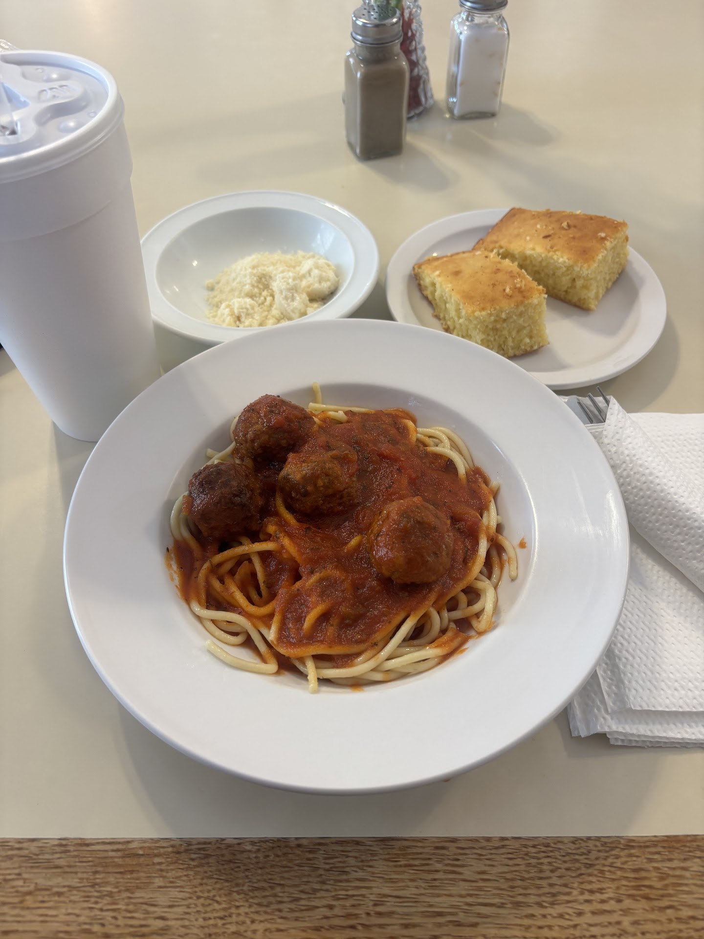 Wednesdays? I’m all about the spaghetti with meatballs, that sweet, fluffy cornbread, and a cold glass of REAL Southern sweet tea. Thursdays? It’s the ultimate comfort meal: tomatoes with rice, fried pork chops, cornbread, and of course, more of that sweet tea.