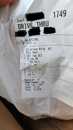 We get our order and notice 3 salads, we only ordered two. Also noticed that we ordered spicy chicken and got plain. We had reiterated that point 4 times before paying. Didn't get fries with a combo- but paid for it. And didn't get the additional ones on the order at all.