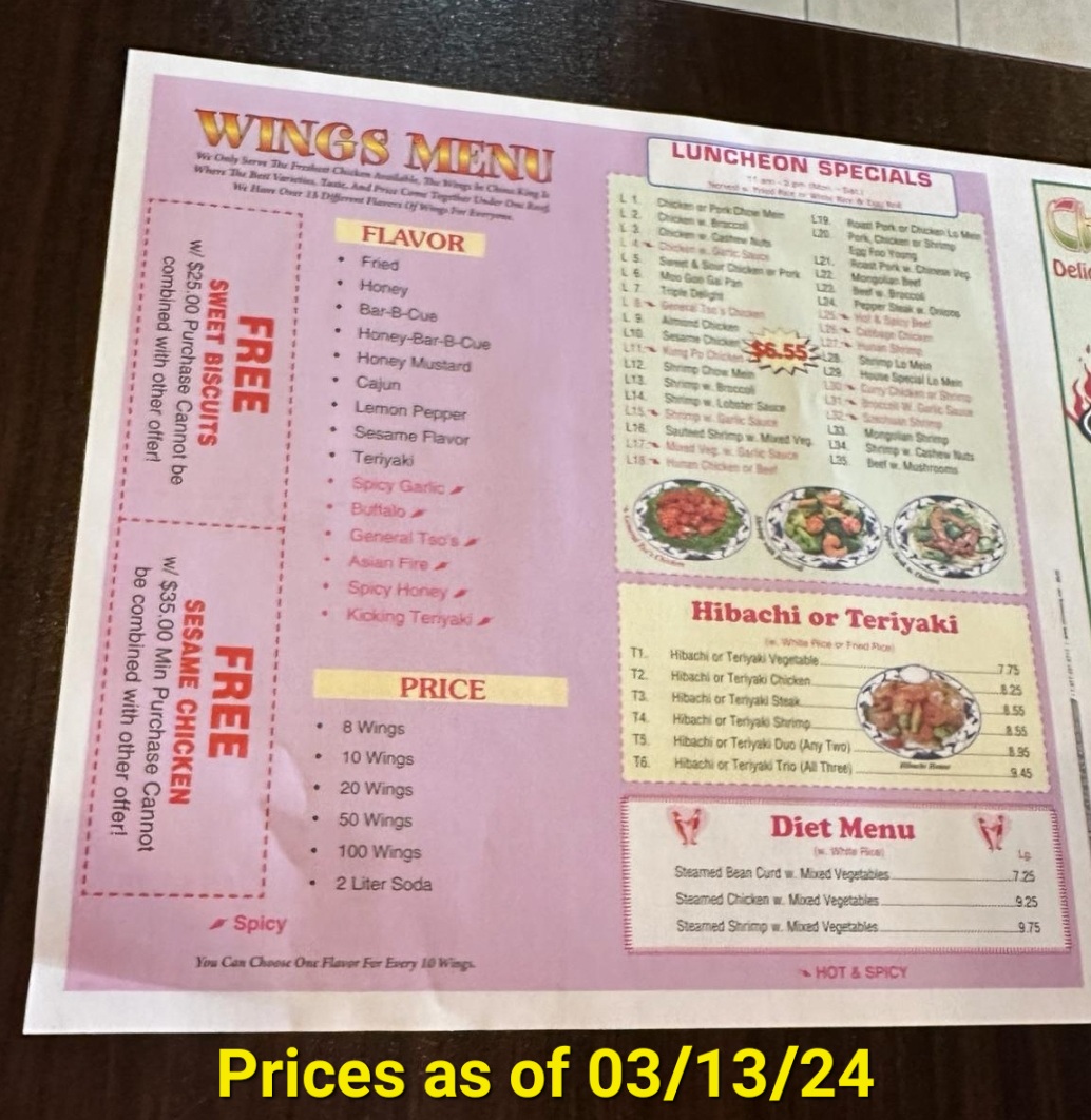 Read moreThe customer service seems to be getting better. My husband loves their sesame Chicken! Everytime we are in Augusta it's an automatic stop!! It It was those lemon pepper wings but now he's got to have the sesame chicken. But notice your receipt when you are there within 7 days you get a discount or something. If you have that receipt. That will determine if they doing better with customer service because a while back they questioned me about the receipt but it is displayed after you pay a certain amount for that meal. You get a free item or a discount off your next meal, so please read your receipt and take advantage of that. No one has money growing on trees in these days, even if you make a good salary. Everything is more expensive. So count...
