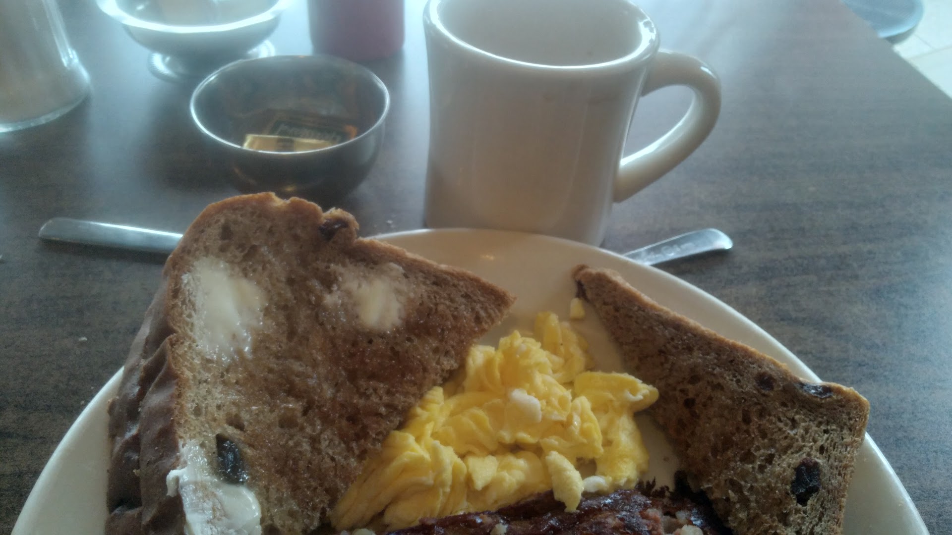 To be fair, the iron man challenge was happening on the day we went for breakfast so service wasn't the best. It was insanely busy, we walked in and no seats at all available except at the bar so we waited. There was only two waitresses on, one was friendly, one seem robotic not a lot of personality. Parking on a normal day there's street parking out front or out back. Free street parking. They have nice decor, old photos of the town through the years on the walls. The bathroom was trashed but again it was the iron man race. They probably should have had more staff on that morning. It's your basic breakfast restaurant that offers lunch as well on normal days. The menu doesn't have a lot to choose from on the breakfast side of the menu but food was good.