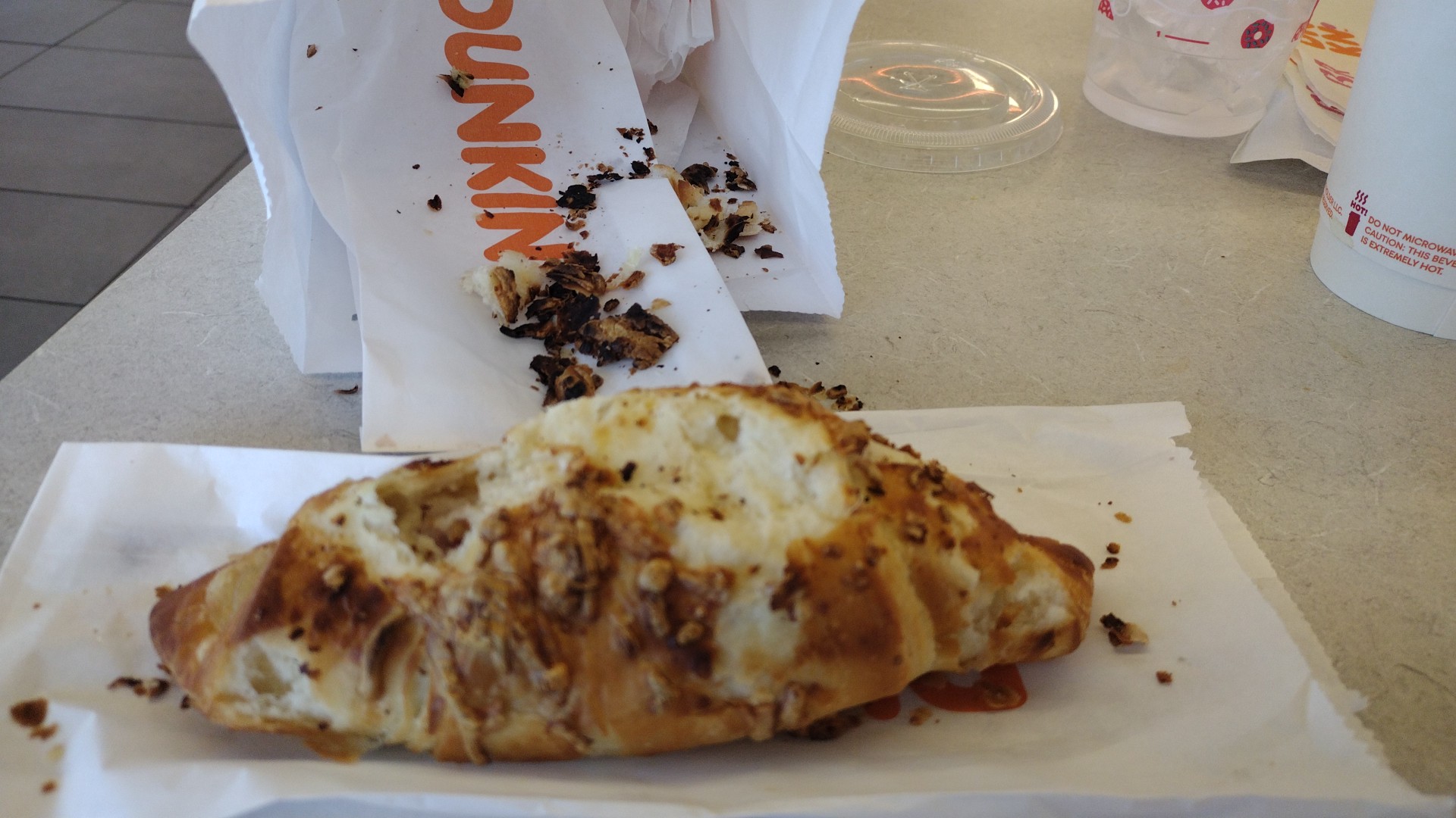 *Ham & Cheese Croissant, 2nd remake; 1st one was fridge cold in the center. This is the 2nd one, burned to a crisp on top (pic shows burned parts in the bag), and STILL COLD in the center.