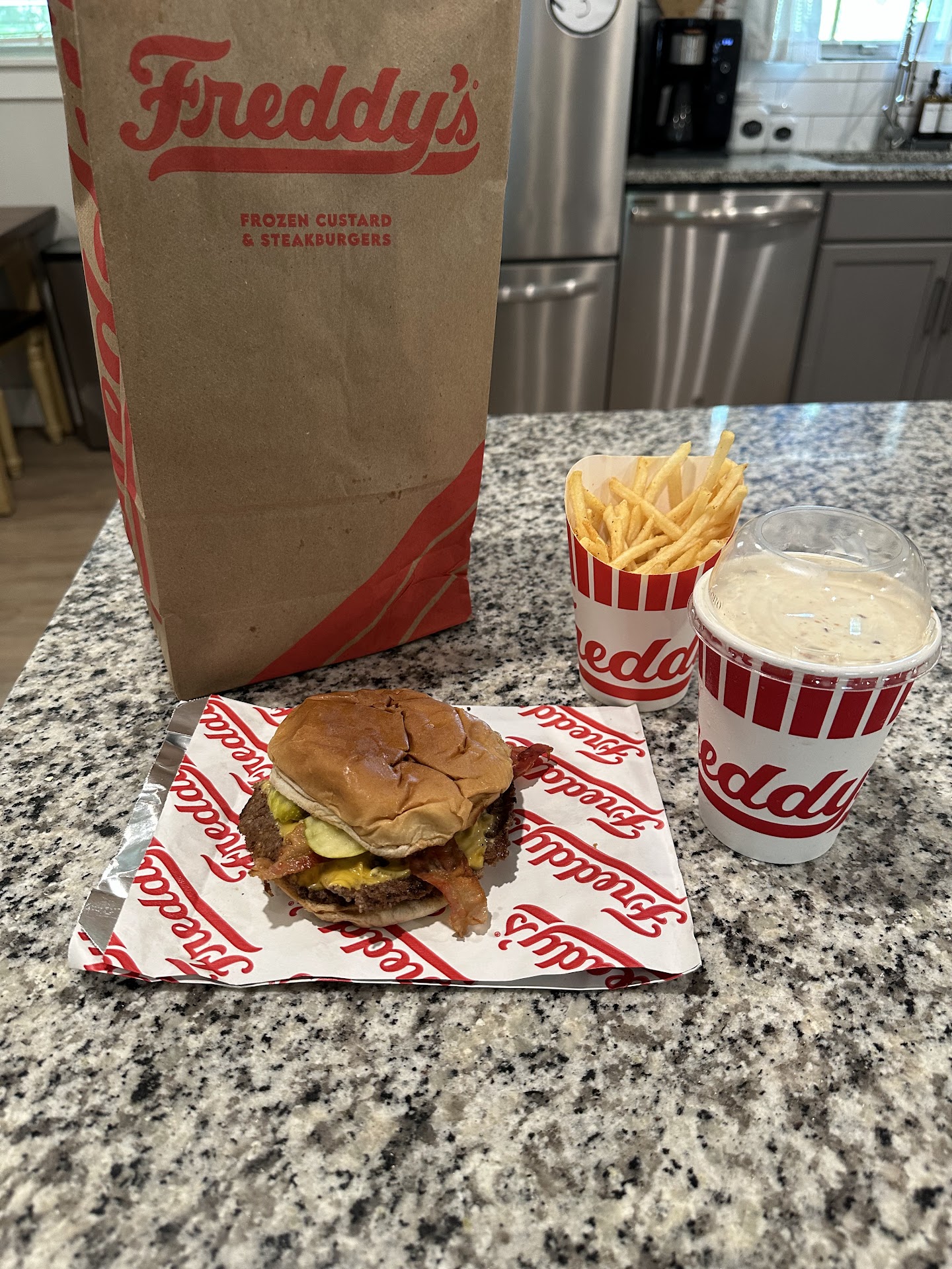 The food is mid. Definitely a disappointment compared to other Freddyâs locations. Most of the employees we saw (about six) although nice, mostly seemed confused.