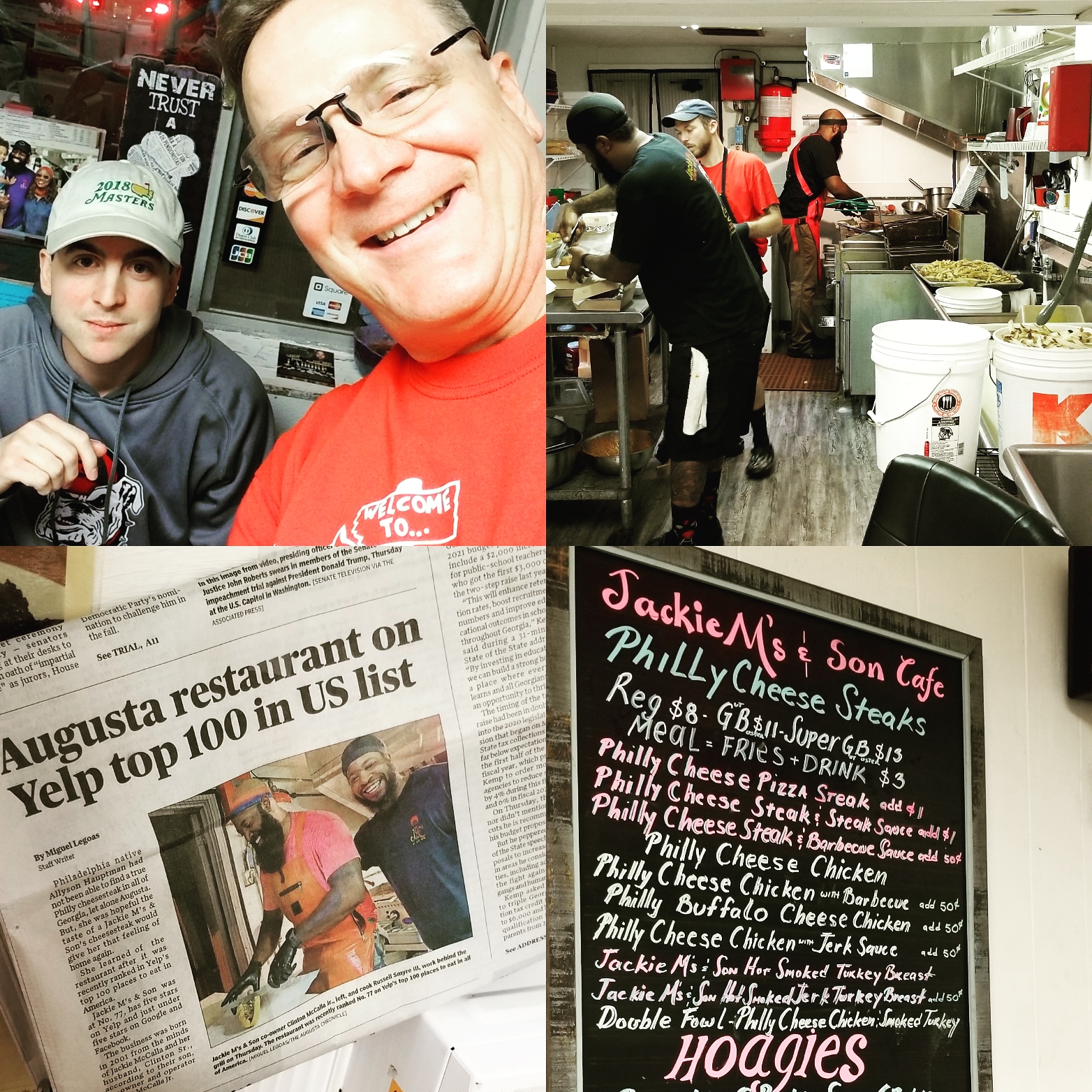 Read moreOf course me and "Son One" had to hit the town last night to find another Augusta classic! "Jackie M's and sons" is now an American top 100 on Yelp ranking a well completed #77! As we took our left on Milledgeville Road there to our left was this older building with lots of people gathered almost with a family like following. This ellectic group had one thing in common, they were there for not just incredible hoagies and "Soul Rolls", they were there for the "Jackie M's and Sons" experience!! When we got to the front door, it was locked... At first Caleb and I looked at each other thinking we were there to late.. I checked the time, it was only 6:30, they don't close until 8:00 p.m.... Suddenly, a woman with an apron opens the door simply to say, we are out of roast beef for their famous Philadelphia Cheesesteak hoagie... Hungry enough to eat the screen door, I asked politely, "do you still have chicken for a "Philly Cheese chicken buffalo hoagie?" She replied, "yes".... In we went into the cramped order area.... There, was one if Jackie M's sons taking orders... but there was much more than orders taken, there was a feeling of excellence, humor, and pride with friendliness that made you feel like family! That was truly their "secret sauce"... He took his time with each person almost purposely to tie in personalized phrases that made you feel like that order was personalized to you... Finally, 20 minutes went by and it was our turn to order.. Caleb first, then me... Well, by that time I was so hungry, I think I ordered 1 of everything that was left! As, I finished, he said, Joe, yours is the last order today because we are now "out of food"!!!😅😅🤣🤭🥳 They locked the door again, so I was the official "they are out of food" guy each time someone new came to the door... I think the crew got a kick out of me voluntarily taking the position as the bearer of bad news to each of the late comers... afterall, I did take the last of what they had gladly!! Checkum out folks! It was worth the hour wait and on my box was the title "Super" with my name...