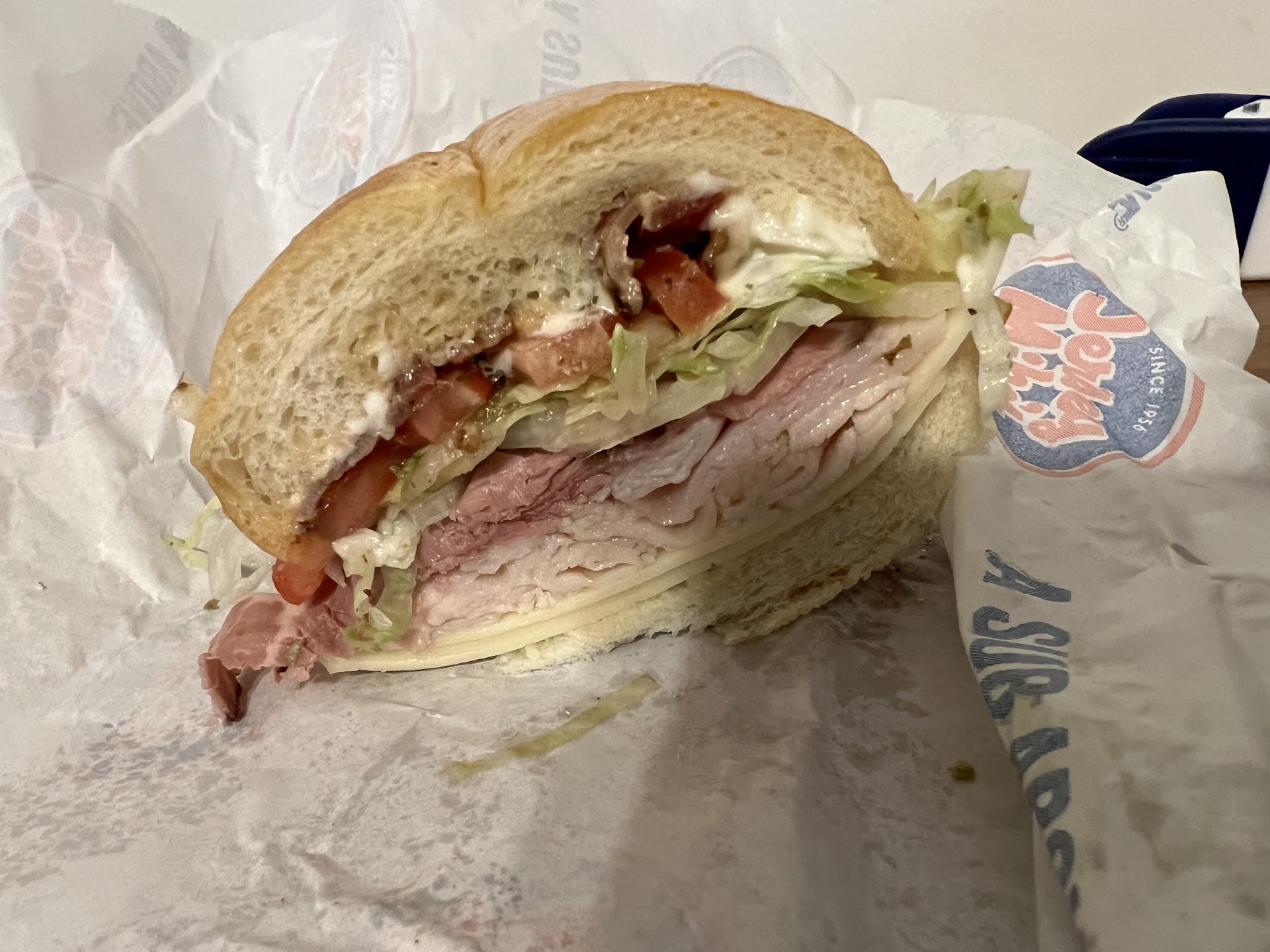 Read moreIf I could give this a negative 5* I would... My FIRST experience with JM... I will start by saying on Sunday at lunch this location was staffed by a bunch of teenagers/low 20s and one older gentleman that was.... Ill just say nicely was not capable of handling a lunch shift demand... He literally took 3-5 mins to place the very few toppings available on a sub it was exceptionally painful with the double tomato... ... BUT... I could have delt with that... What I couldn't deal with is the (likely teenager) cashier who had previously wrapped a sub after cashing a customer out before me because this gentleman was not functionally capable.... I checked out and she says ty have a nice day! I'm standing there with my sub sitting on the counter...... I stare at her for 30-45secs at least or more felt like more as she leans against the register (the gentleman is staring at the bread rack.... Not functioning)... I finally get pissed off and grab my sandwich and wrap it myself!!!!😡 For the price the charge I shouldn't have to wrap my own damn sandwich while someone is standing their at the register (who had previously put on gloves and wrapped a sandwich )for the guy.. it wasn't till I grab my sandwich the light goes off with the teenager that gee my customer is standing in front of me having paid she shouldn't have to wrap her own sandwich... (Keep in mind this register asks for a tip as well!) I will absolutely boycott jersey Mikes unless this situation is addressed and encouraged everyone else I know as well. The sandwich in the end was ok nothing special Ill go to subway next time and get a bigger sub, quicker service and hey.. they are slicing meat to...