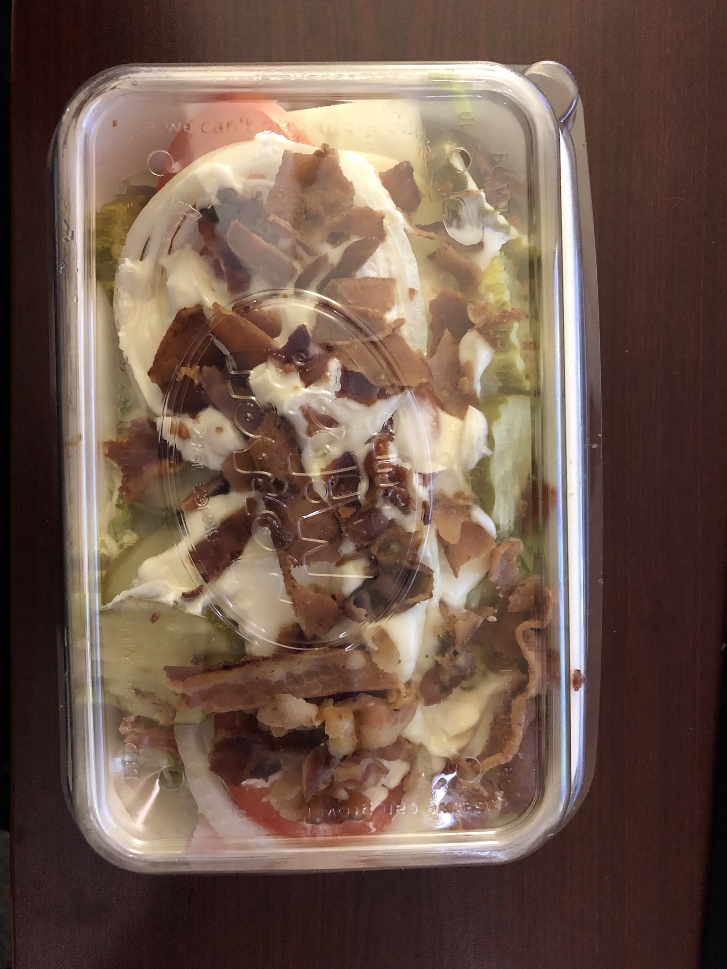 The disappointment in this visit though was that I ordered a salad and the guy making it clearly didn’t know what he was doing and needs to be retrained. Instead of it being prepared like it’s supposed to with the meat and cheese being rolled up and cut before being placed on the top so it can be eaten I literally got whole slices of meat and cheese layer down with a bunch of veggies on top like he was planning to make a sandwich and just removed the bread. Then proceeded to while mayonnaise over the top of the whole thing with a knife….. I’m honestly not even sure how to go about eating this right now.