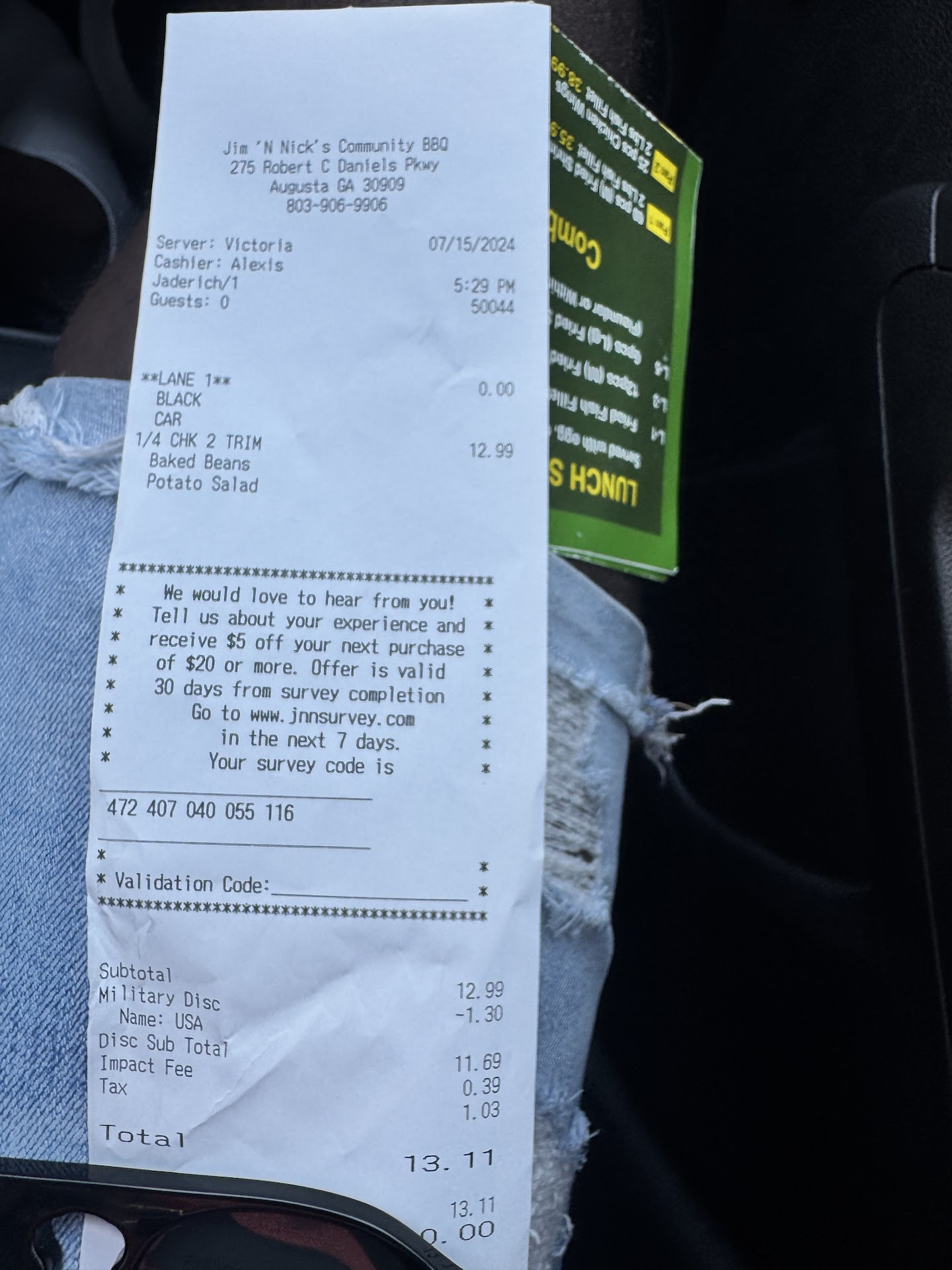 On a positive note, I just ate lunch there with Javell he was an amazing server the other day, and I ordered 1 potatoe the same way it was piping hot and fresh . Javell attitude was great, and he was so well-spoken and polite. I hate that they have to share tips cause he deserves that whole 20.00 to himself. That was the reason I didn't mind doubling back there, but I shouldn't have. Ugh !!!! I wish I could have got the young lady's name, but she definitely needed some coaching, or working with the public is...