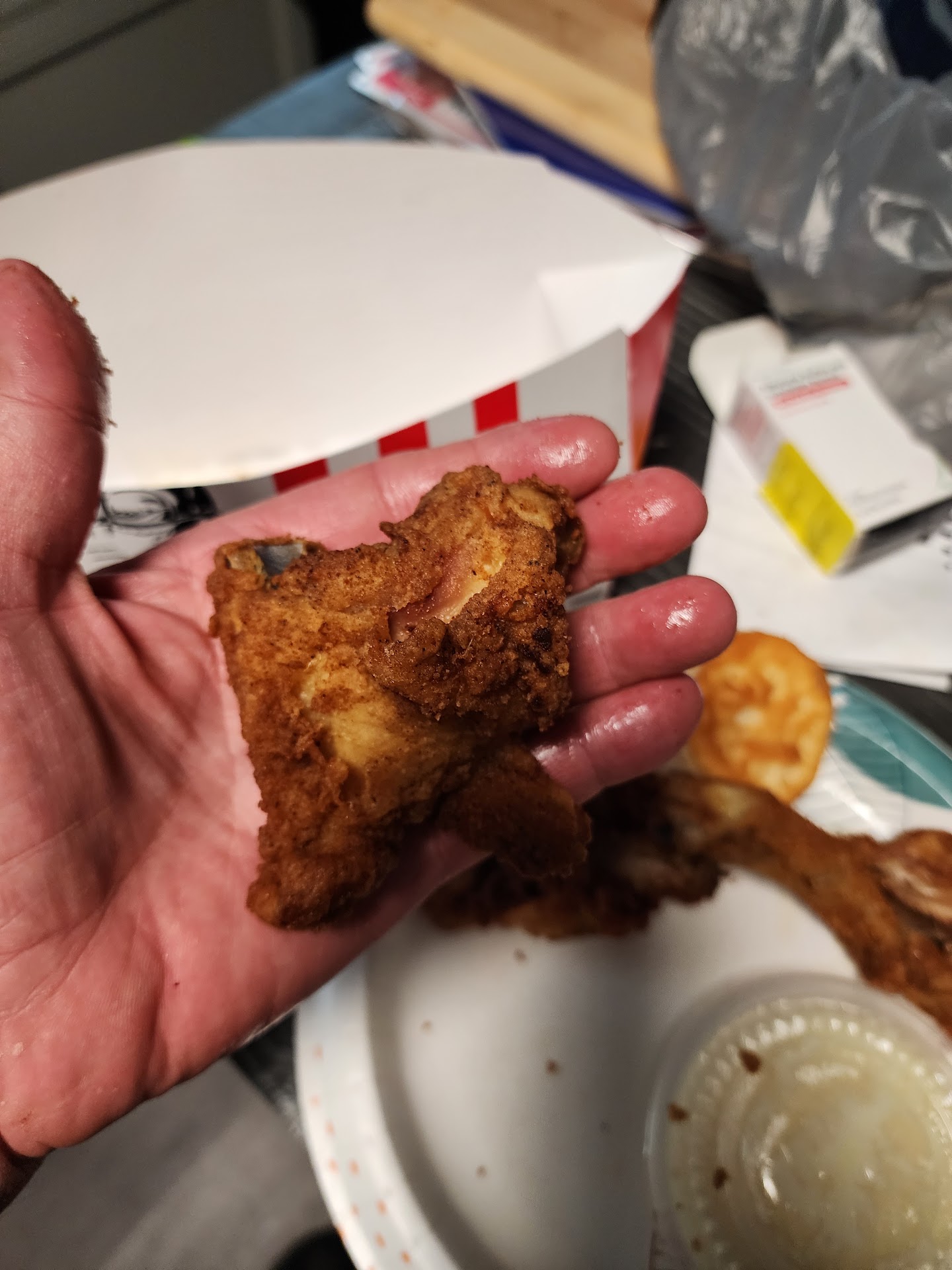 Word of Advice...CHECK YOUR ORDER BEFORE YOU LEAVE T|HE DRIVE-THRU-WINDOW!!!! Biggest mistake I ever made today. Ordered the Family meal which consisted of 12 pieces of chicken, 1/2 gallon of tea, 4 biscuits and 2 sides. I ordered 1/2 original crispy and 1/2 grilled. Got home and had all items but the 6 pieces of grilled chicken. Immediately found my receipt and called to inquire about the missing chicken and to see could I come back and get what was omitted from my order. Spoke to a young man that confirmed that 12 pieces of chicken actually came w/the family meal and then he allowed me to speak to his manager. Spoke to the MGR, John, who told me he personally fixed my order and that he did include all of the chicken. I informed him that only the 6 pieces of crispy were in the box but he was adamant that he packed it himself, and I felt like he was saying that I was lying. Had no reason to lie plus I am no thief. And who's going to lie about 6 pieces of chicken. He did offer to replace but the damage had been done. My husband refused to drive back across town because of their error. Had the manager gone back and looked at the tape, cause I'm quite sure they have camera's, it would of shown only 6 pieces of chicken, instead of 12 were placed in my box.The only good thing out of this situation was that the food we received was great. I have absolutely no complaints about the food I did receive because it was delicious. Please believe, this is my last time eating here. Will drive to Peach Orchard Rd from this day forward. So word of advice to anyone who eats here, CHECK YOUR ORDER BEFORE YOU LEAVE THE...