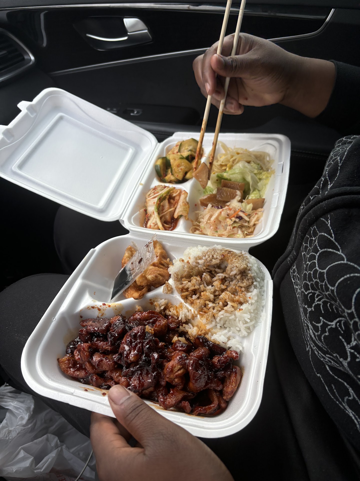 I’ve been craving Korean food and this place was the closest. I decided to do one of the lunch specials of beef bulgolgi because I figured that Korean staple would be the best. The beef was dry, but thankfully they give you a whole second container of banchan so it balances it out the dryness. The potstickers were also dry and/or overcooked. The portions were generous though for $10