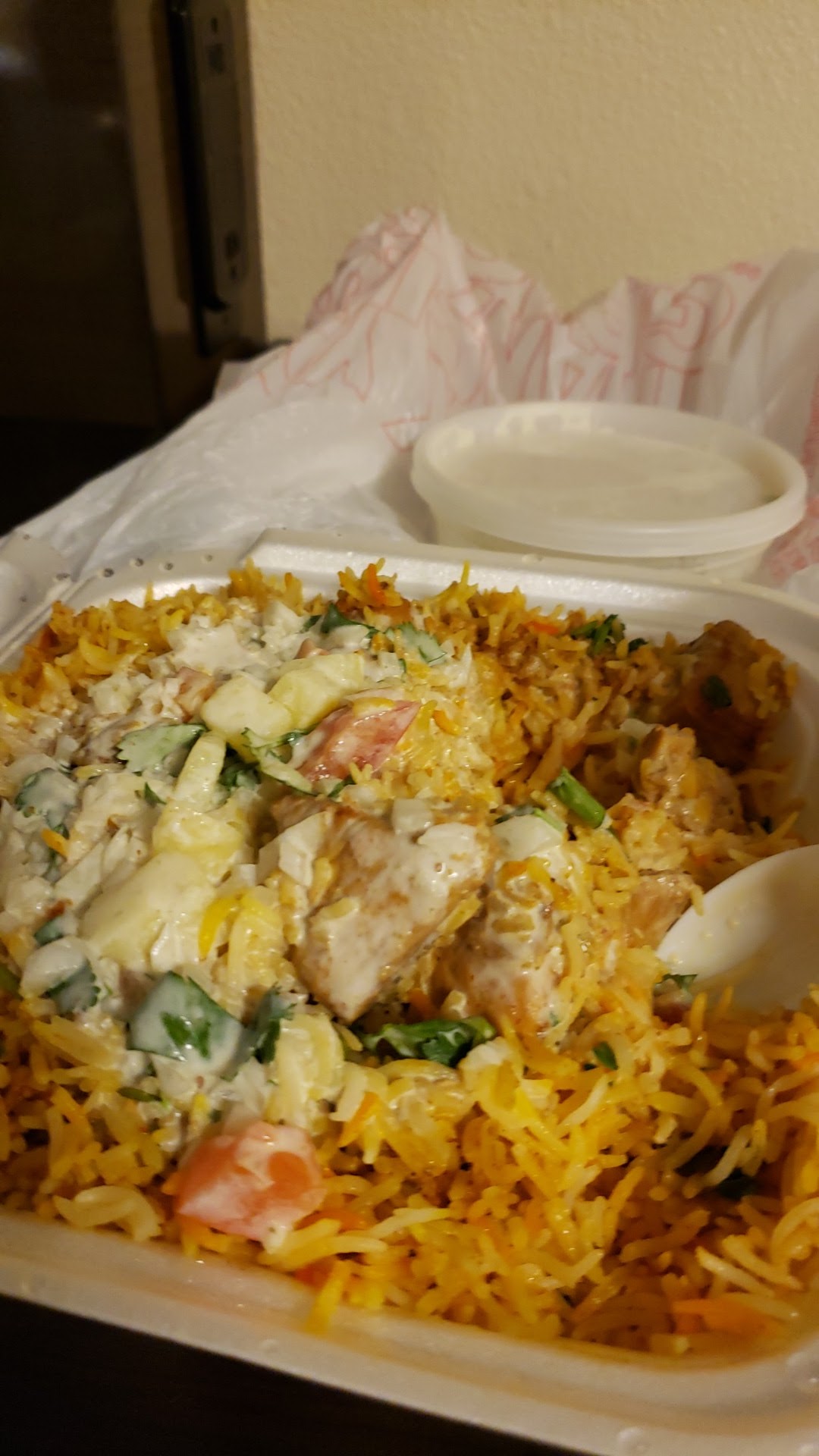 Read moreToday was our first visit, we found this place through a Google search and wanted take-out Indian food. This is a small hole-in the wall restaurant that does take-out only, so definitely call in your order. It took about 20 minutes. The food was very "homestyle" and felt toned down from your typical Indian restaurants (it wasn't as spicy hot) but the portions were large. Everything was fresh and tasted great, I was just looking for more intense flavors. The Samosa Chaat appetizer was delicious. It's a samosa cut in half on a bed of chickpeas and chutney (it's a large portion so get ready to share). My husband raved about the "layers of flavor" when eating it and loved the switches from sweet and spicy. I got the Chicken Sabzi which was cubed chicken and cubed potato in a yellow sauce with spices, with a side of rice. He got Chicken Frontier which was just okay, it wasn't our favorite (not enough flavor that we were looking for), but would be great for kids or anyone who's picky. It was a rice dish with cubed tandoori-tasting chicken, onions, and peppers all mixed into the rice. We also got Naan bread, which is always recommended when eating Indian (each order of naan comes with 2 warmed halves). Our meals came with a flavorful white sauce on the side-we have no idea which dish it was for but it was very tasty and went well with everything, even to dip the naan in. We spent $30 for our 2 entrees, appetizer, and 2 orders of naan. Overall the food was good and fresh, and better for people who can't tolerate...