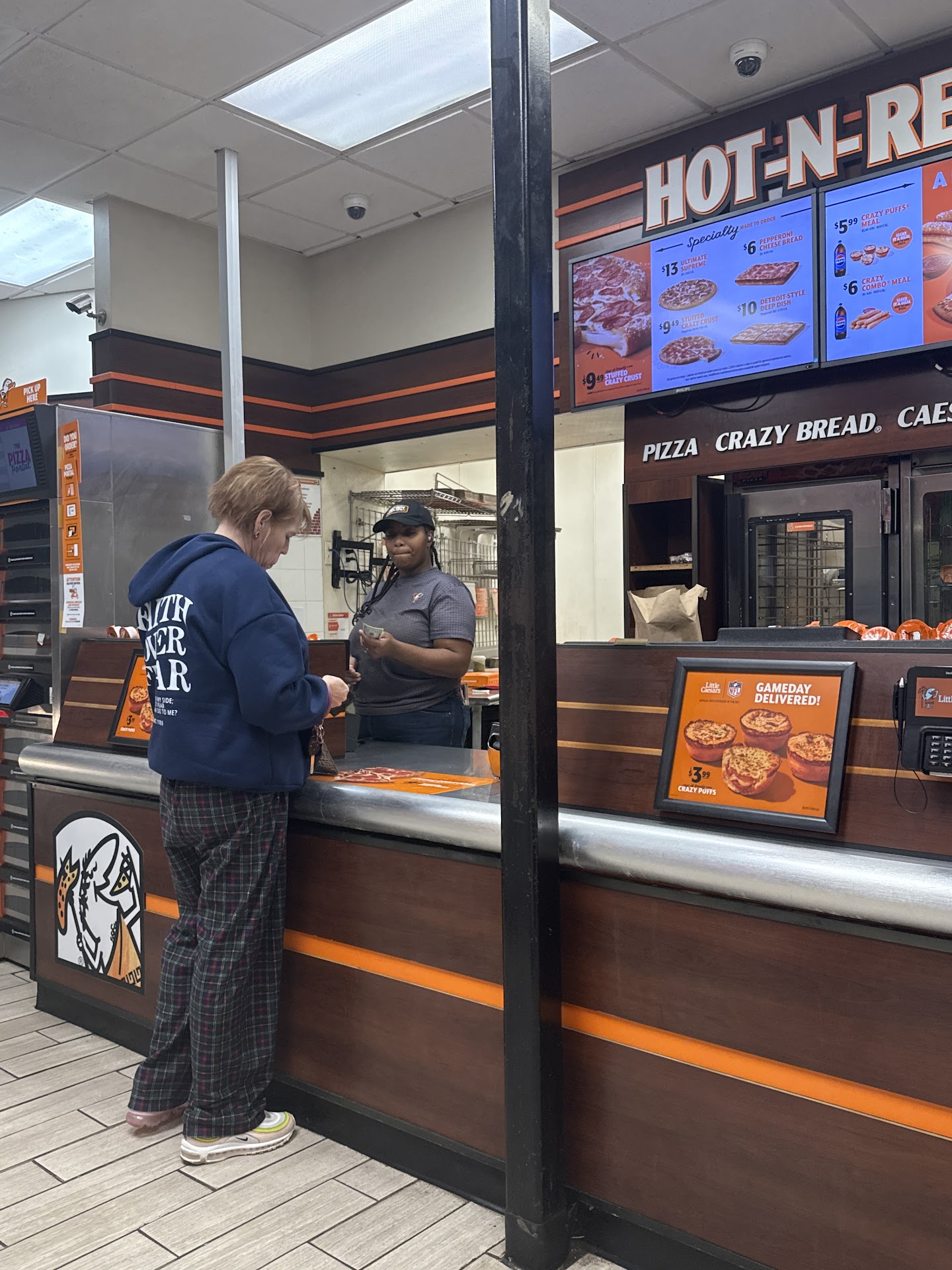 Ā Ā Ā Read moreManager was upset because the cashier was doing their job, by taking our orders because we walked in the door before 10pm. I order a cheese pizza with two ranch, after standing in line behind an order of 5 pizzas and a cheese pizza, and pepperoni. The manager walked to the back after service the two orders before me and said yelled donāt take no more orders. (My order was placed already 5 to 10 minutes ago). The cashier asked me would I mind taking pepperoni, I replied no I donāt even eat pork. The manager comes from the back to the front and looks and me and say excuse me, as if I said it did something wrong. I replied your cashier asked me do I want pepperoni, I stated I donāt eat pork. With attitude the manager said well he was t supposed to take your order. Preps the order cooks the pizza not completely tried taking out the pan, you can see the raw dough, r rd he manager placed the pizza back in the oven. Another employee remade my pizza. The crew workers were great. The manager did not lead well tonight. Thank you for the crew member for making it...