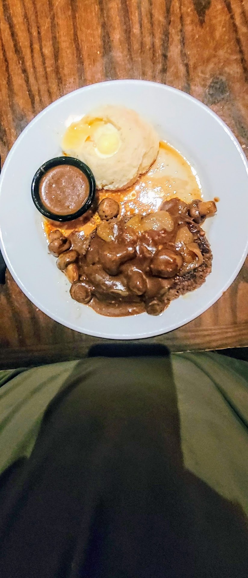 I had a beer, side salad, side of rice, mashed potatoes and chop steak smothered in mushroom, onion and gravy. However my chop steak was red even though we asked for it to be well, the cook still cooked it medium-medium well. The situation was taken care of but yuck. After they cooked it again, it was absolutely delicious. My husband had a full rack of ribs, loaded baked potato and a side of fries. He generally dosent like baked potatoes but he really enjoyed this one. The ribs were awesome and very meaty. We didnt order dessert but the choices looked pretty yummy. Our waitress was Shyann. She was a pleasure. She was very attentive, professional, was quick to have the steak re-cooked, and our soda was never empty. Dirty dishes never sat there for long. She was good with detail, memory and had a good attitude. I hope whoever reads this let's her know she did a great...