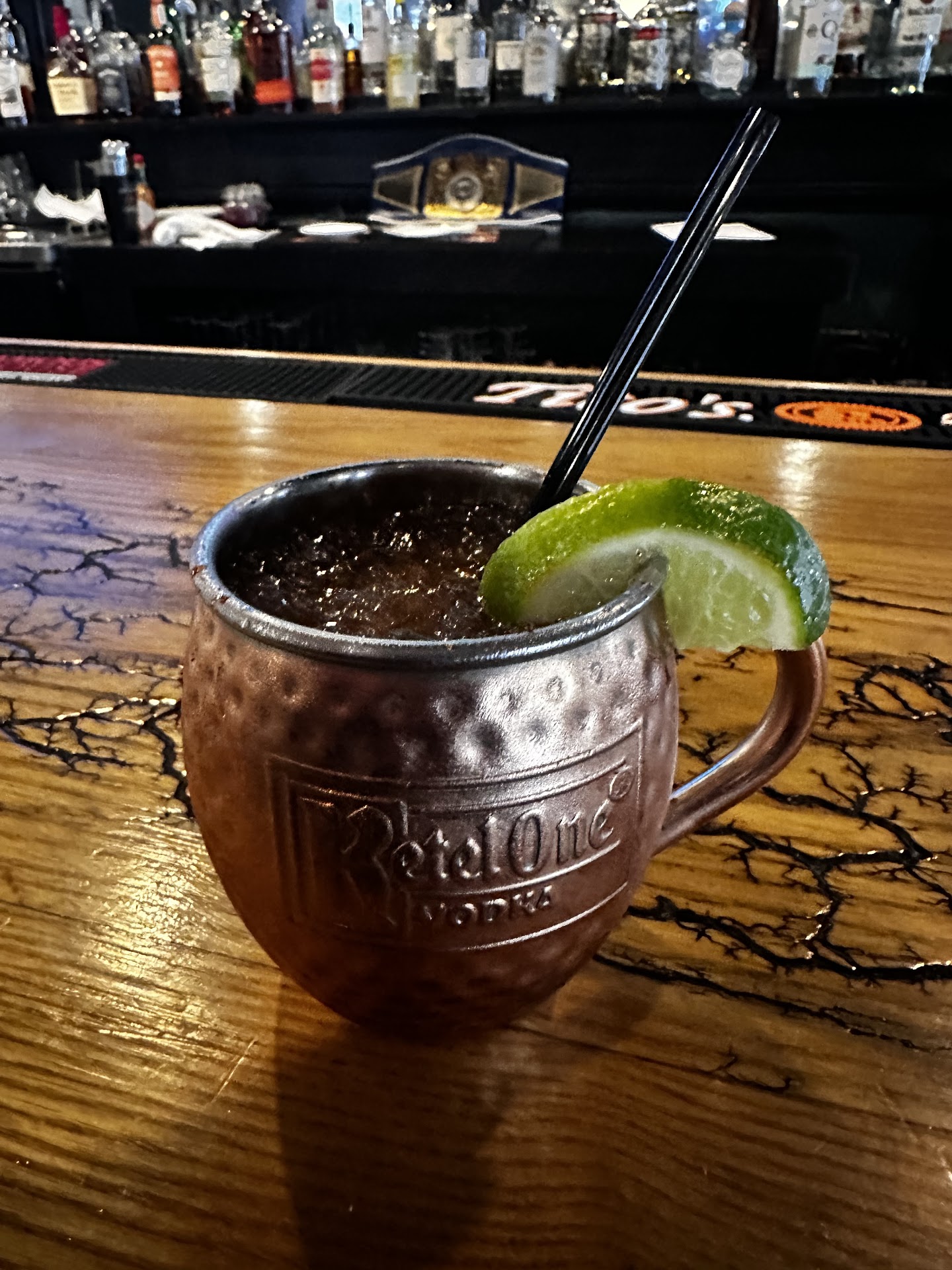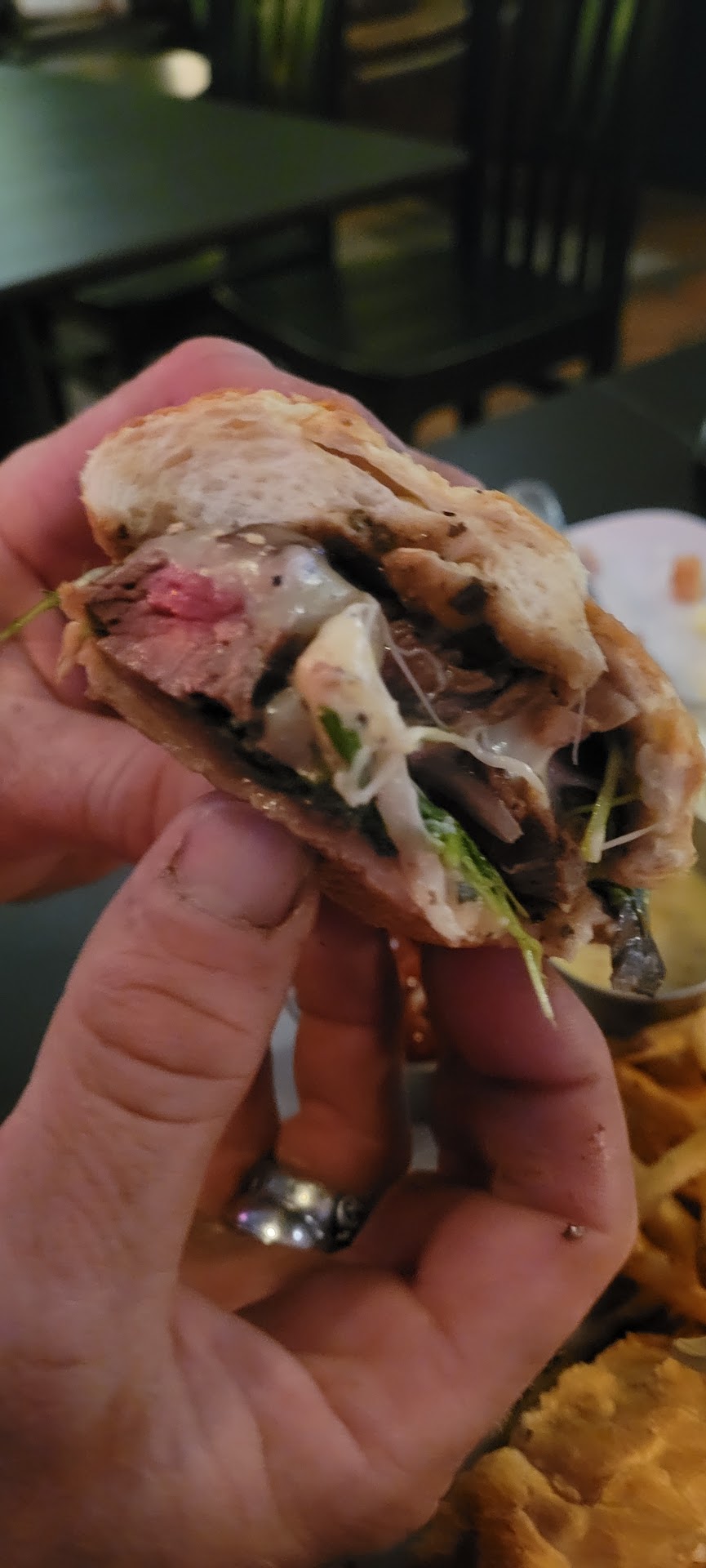 Read moreWhat a cute, romantic and comfy lil place to grab a good adult beverage and dinner. The young lady Lucia (sp) did an excellent job taking care of us tonight. She was all smiles, very sweet disposition, brought us anything we needed or wanted immediately and with a great attitude!! She needs a raise!! I had a Moscow mule(excellent) my hubby had the long Island(fair). I ordered the burger and fries. The burger was outstanding!! Not dry and over cooked at all.. plus the taste was mouth watering. The fries, not so much.. cold and very thin... My husband had the steak sandwich and fries. Steak was perfectly prepared, not over done at all!! The fries again were not good. All in all though, we loved our experience and will def go back. Good...