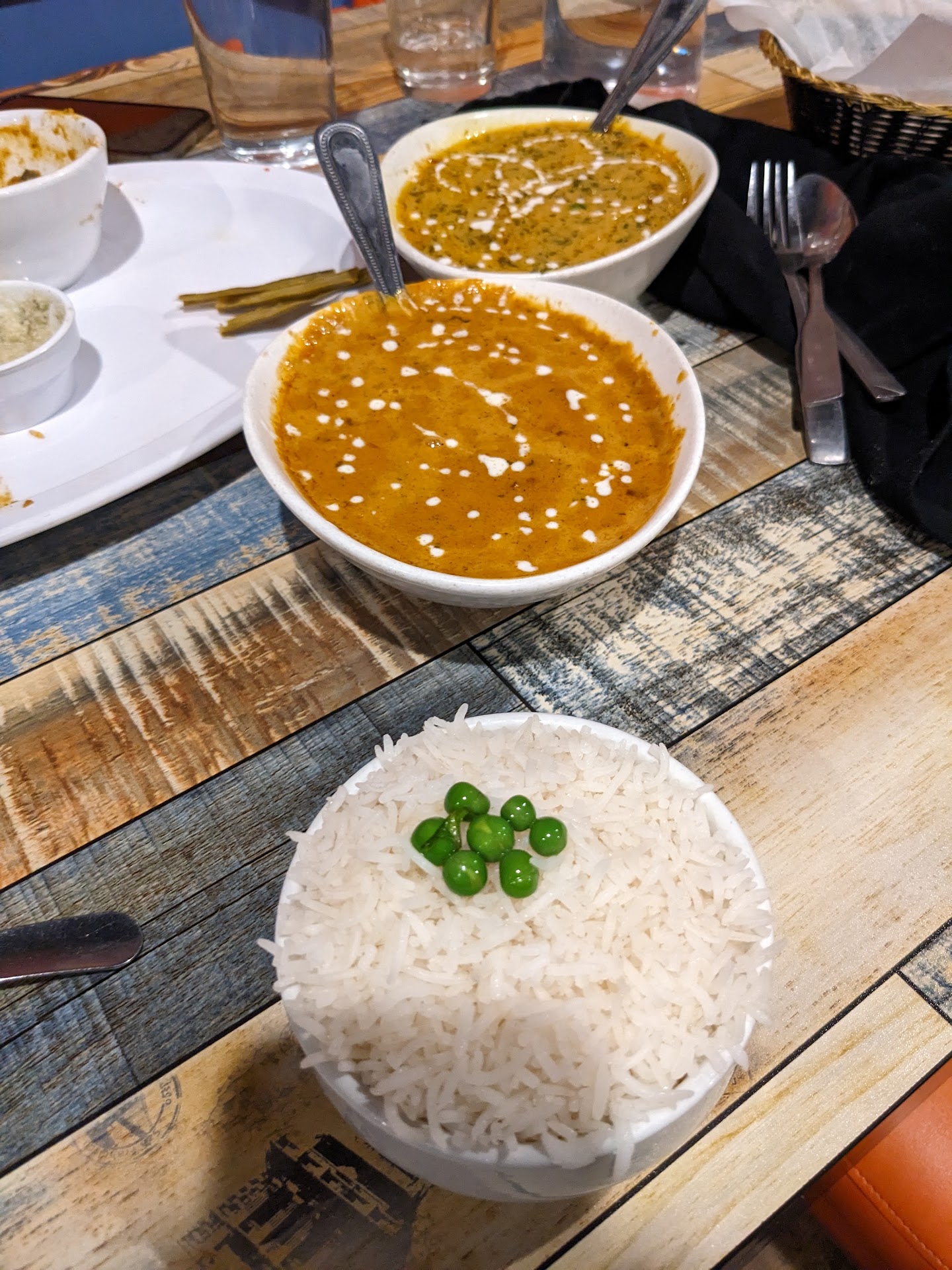 Read moreWe went to this restaurant with my husband and two kids for the first time. When we stepped in, we were greeted very warmly by a seater/host and told that we could pick any table we wanted. We selected a couple of appetizers: Mix Veg Pakora and Veg Samosa. They were a bit salty but I didn't complain because I love salty food. They were excellent in taste and presentation. For my daughter, we got chicken nuggets and boiled eggs, as they have a kids menu unlike most other Indian restaurants I have been to. The kids food was great. The boiled eggs came in a good portion size and nicely seasoned, which my daughter loved. For our main dishes, we selected chicken biryani, methi mutter malai, saag paneer, and rogan josh. We like to order a variety of dishes to try them out and take them as left overs. Every meal came in great portions, tasted great with delicious spices and herbs we love and in nice porcelain services. The waiter brought extra rice in advance for my son. The appetizers came promptly. The main dishes also came on time. The restaurant itself looks very clean and is comfortable with nicely cushioned chairs, set up tables and a large screen tv showing Indian food, which is great for a restaurant. While we were eating, the chef came to ask how we liked the food and the waiter accommodated us nicely during our dining. At the end of our meal, the waiter gave us nice plastic cups with lids to put the left overs, which I can reuse myself. Overall, this was a great experience and we will frequent this restaurant from now on. I can happily say that there is a great and a reasonably priced Indian...