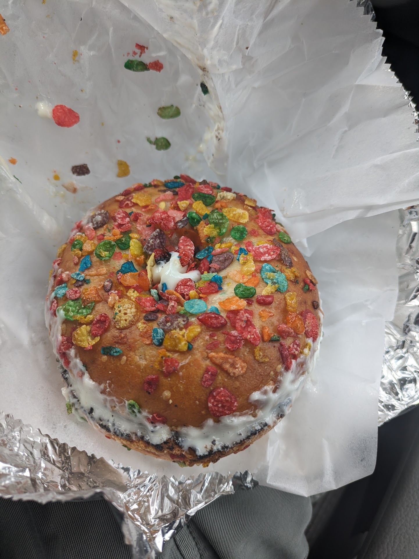 The moment I pulled up to this place I had high hopes, and those hopes were fulfilled. I could talk about the modern, comfortable and clean store itself, or the wonderful friendly staff---but the bagels. Oh my. The bagels are some of the best I have ever had but the combinations and toppings are what make them achieve their glory. This is a new gem with a rapidly growing customer base for a reason! The menu is a one-page size and each bagel is perfected (at least all the ones I have tried so far). And they always have some tempting different pastry at the checkout. No overstimulation or choice fatigue! The Honey Rosemary bagel made me want to cry, instant love. If you're in the area or a regular commuter, look no further. This calming, charming, diamond on the corner is certain to soothe your hunger and excite your taste buds. Pictured: Barnabas, Arsenal, Augustine, and a Fruity Pebble w/ whipped...