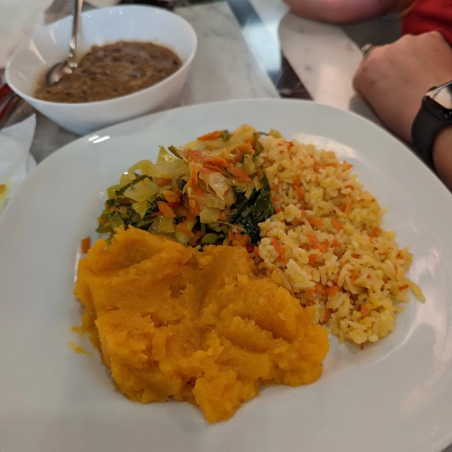Read moreOkay, lots to say about Soca. The hours are not accurate. They are changing them because of staffing issues. Call before you go. Regardless, my friends and I were very excited to eat at a new vegan restaurant in Augusta. Once we arrived we were a bit confused if we should sit or order at the counter. This seemed to be a common problem with other customers as well (a simple sign could fix this). Our waitress seemed a bit untrained and impatient. Among other things, she gave the wrong drink and said "sorry this is all you'll get. We're out of the one you ordered". I was surprised at this since all the reviews say the opposite. One couple walked in and sat down for 20 minutes and were not spoken to. Not even greeted! They ended up walking out the door. When our food arrived, it was cold. Thankfully they did heat it up when asked. The portions were kinda small for the price. The best thing Soca has going for it is the flavor, presentation and vibes.