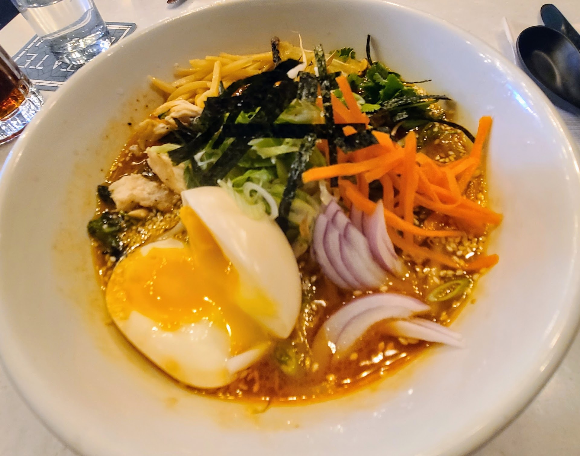 I had to eat a few bites of my wife's ramen to confirm her review of it, and it only took one to solidify her words. Same issue with the noodles, already addressed in detail. The chicken was thigh meat. Dark, oily, and fatty. In the correct context, prepared properly, can be delicious. Floating in broth that is already oily, and cloudy (shio ramen should have clear broth) is not where I want this kind of meat. The broth wasn't flavorless, but would have been better off if it was. A distinct chicken-noodle-soup-flavor as if it was made with boxed or canned broth, or even bouillon cubes.