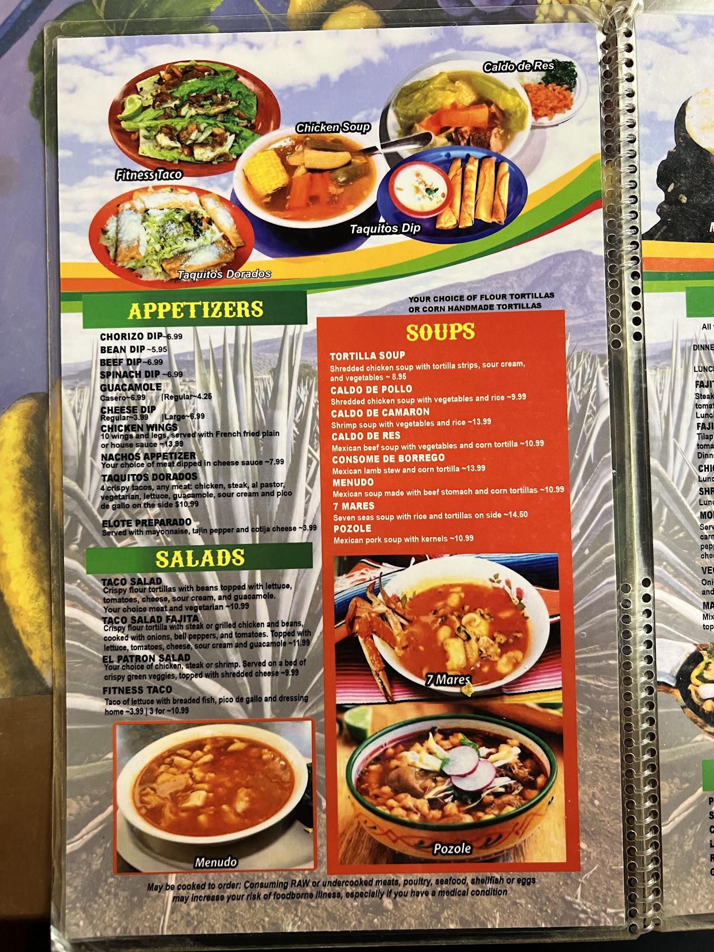 "Observed cook in kitchen handle cell phone and continue food prep without washing hands and putting on gloves. Wash hands after handling personal items and before any continued food preparation." "Observed employee improperly drinking during food prep. Observed cup with no lid being stored above steam table. Employee drinks should be covered with a lid and straw to prevent accidental spills or cross contamination." "Observed raw shrimp stored next to cooked hot dogs. Observed shrimp in its own liquids uncovered and able to spill from its own container to other open containers holding cooked hot dogs, raw chicken, and raw pork. Do not place raw foods next to cooked or other raw foods in a fashion where cross contamination is possible with no means of proper separation." "Observed excessive build up in ice machine. Clean ice machine ASAP." "Observed pork, sour cream, beef, and radishes without any labeling in RIC under prep top. Observed tamales with a use by date of 7/27/24, ribeyes with a use by date of 7/19/24, higado with a use by date of 4/12/24. Label all food in storage over 24 hours. Discard food appropriately and monitor use by dates closely." "Observed several soiled wiping cloths left on prep areas throughout kitchen. Store wiping cloths in sanitizer when not in use." "Observed scoops stored in seasonings. Repeat violation. Store scoops outside of food product itself." "Observed improper hand washing at sink labeled 'food wash only' and observed food debris in hand sink. Repeat violation. Use sinks only for their intended purpose." "Observed flies throughout kitchen, dining room, and restrooms. Repeat violation. Determine a method to deter flies from facility as...