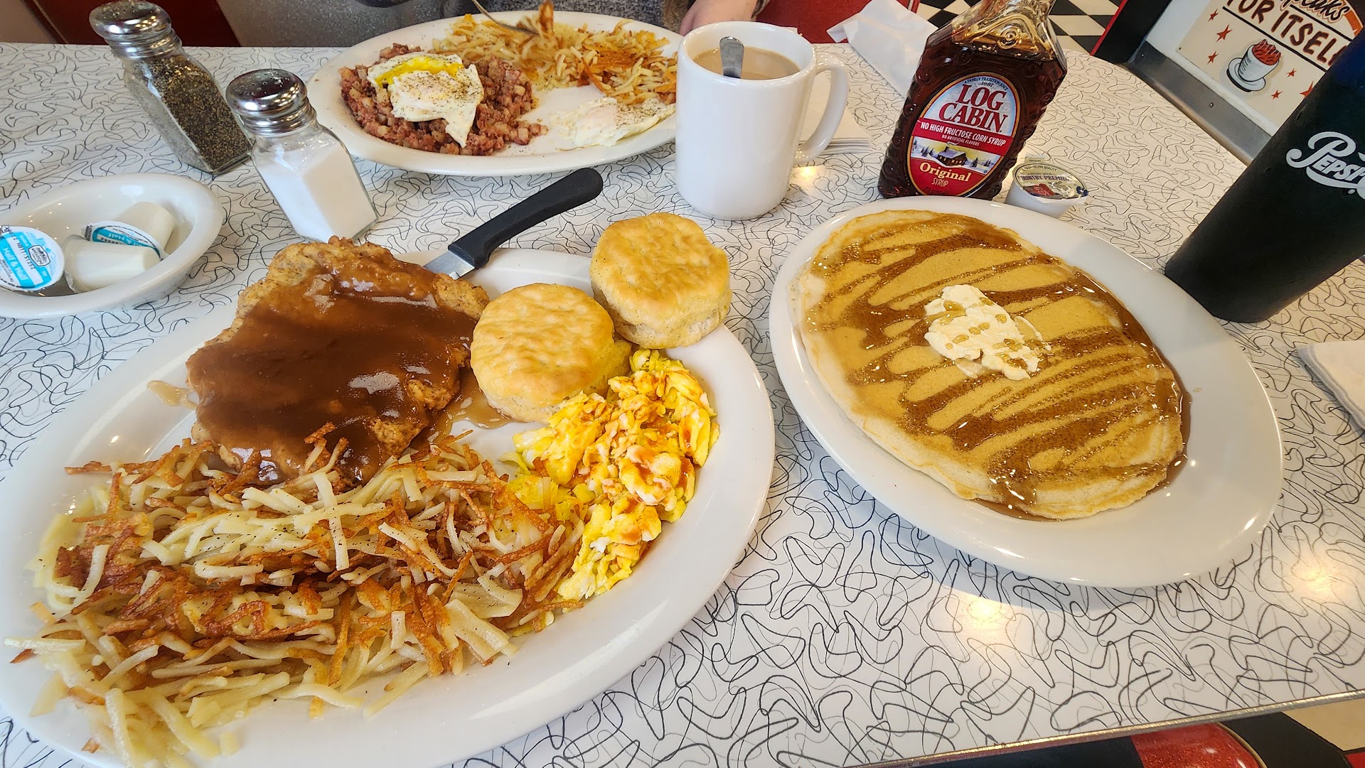 Read moreA kitschy little breakfast bar similar to Waffle House. Built in the style of a train diner car. I just want to say the waitresses were awesome! Even though one looked like she just got off duty at the local titty bar and was drinking a mimosa at the front door. Hey, you go girl! The boss of the day was almost rude as she rushed us to hurry up and sit down, hurry up and order, etc., she acted like the place was packed even though we were there at a slow time for them. We did like the memorabilia on the walls and the set up was cute. Just a side note for the money wise, this establishment is charging an extra $.50 an egg, during the bird flu epidemic itâs normal to pay a little extra for eggs in Michigan and Arizona where they are in such high demand⊠but Georgia? Walmart didnât even increase their prices $6 a dozen in the states that were hardest hit. Feels like price gouging? It is. The South was not hard hit and this place probably buys locally and wholesale. No way did their eggs go up to $12 a dozen. Maybe eat something besides eggs, or somewhere else? So just to be clear the ladies working here are great, the waitresses anyway. They have to make a living so tip them (âThanks ladies!â) instead of the greedy owners. Course, like the Asian restaurants, this place has gone to â5 or more is a crowdâ so you tip regardless, we did, 5 of us and one of those was a 3 year old who had fruit! She didnât even take up a seat or use...