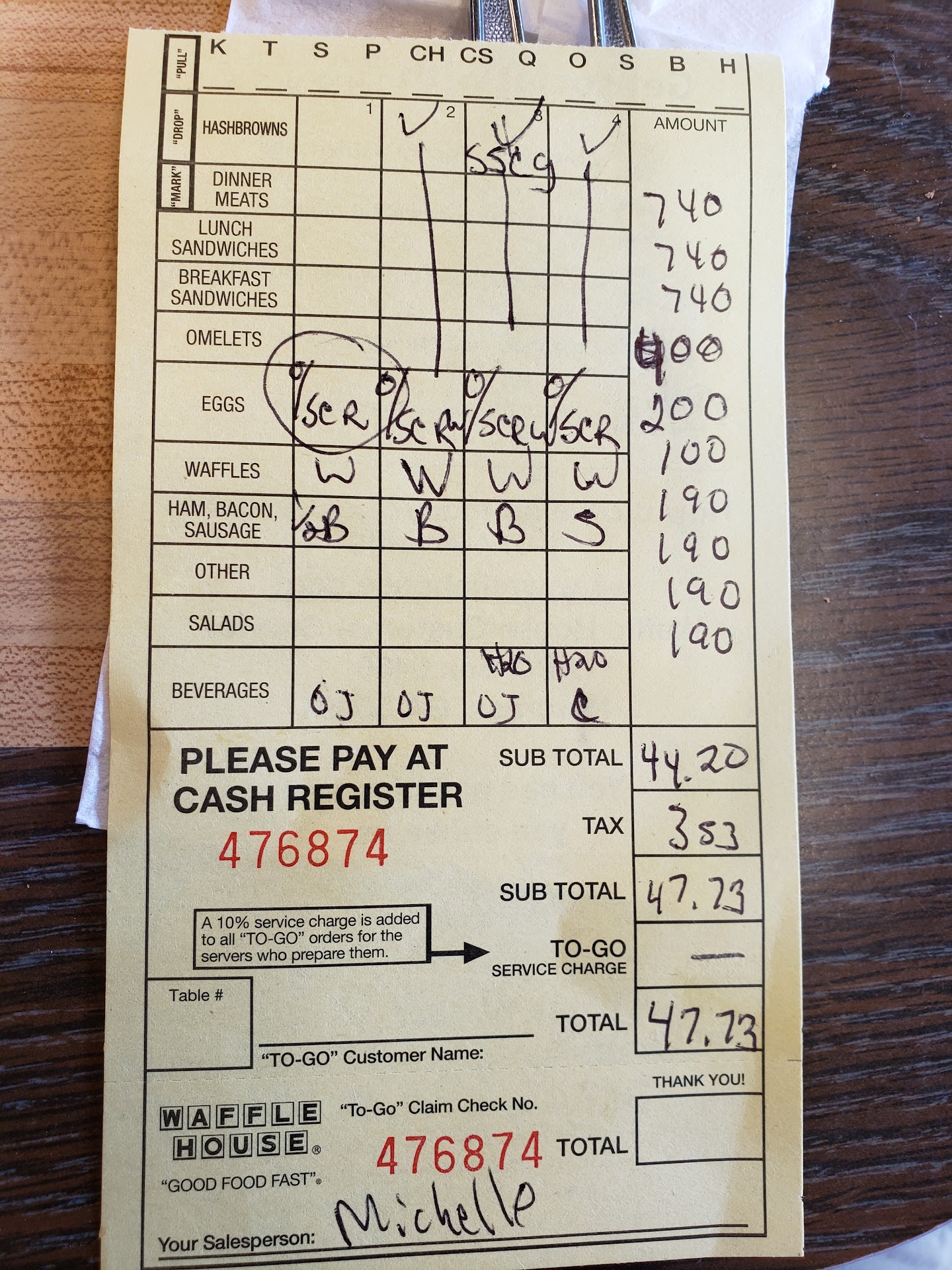 Paying time comes; I asked if they honor the 10% military discount. I was told yes and the order came from $47.23 to $46.23. The math just didn't add to me but since is something that is not mandatory I appreciate anything they can give us as a discount if they choose to do so. We will stick to other places, now we know better to never go to this specific...