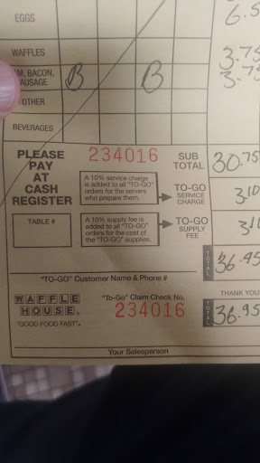 Read moreStaff was very very slow to take order, cook could not do more than 1 order at a time. Order was called out to cook and he did not even make it. We have been waiting for over 20 minutes for 3 hash brown bowls and a waffle. They burned two other waffles beyond recognising. We are still waiting for the waffle and sausage hash brown bowl. New cook has just come in and he is on it trying to get the orders out. Their was only 3 people in the whole restaurant and 3 call in orders were not ready after 30 minutes. 9:11 p.m. and still here, been here since 8:30 and they burned our waffle and are now making another one. Usually this is a good waffle house but staff here tonight does not have a clue as to what they are doing. Sad...