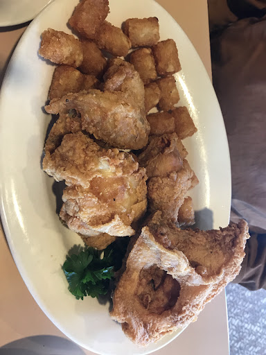 My family and I have been coming here for over 30 years, and for the life of me until my Father-in-law mentioned today... I never had their fried chicken before... I'm sure I've had almost everything on the menu but I never had their fried chicken... So when you go into their menu you will find what's called a "1/2 Battered Chicken".. which essentially is four pieces of fried chicken; a breast, a thigh, a wing and a leg w/ choice of potato and a vegetable of your choosing. They were out of everything else in terms of vegetable except for green beans which were fine... but let me tell you there is a little wait time on the chicken because it is hand breaded per order from scratch, fresh in their kitchen, but people...