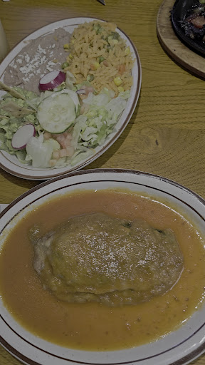 Had their steak dinner with rice, guacamole, enchilada with mole sauce and cheese and fried beans. $15.99 + tax