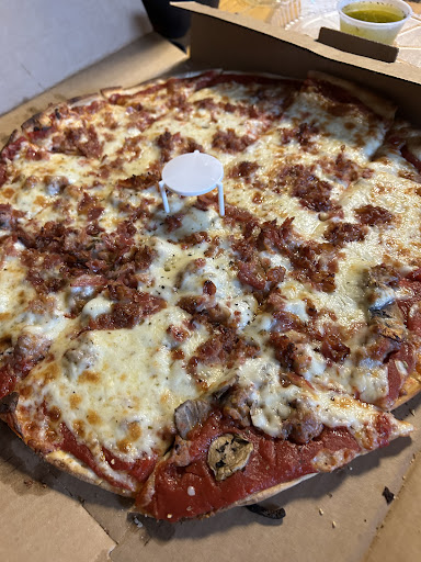 Read moreI don't order from here often, but when I have in the past, the pizza has been good. This last order will more than likely be our last, though. Ordered a pizza on the way home, planning on picking it up then heading home. Whomever was doing the call was either not holding the phone to their ear or was just keeping it on their shoulder because we had to ask for them to speak up multiple times. We placed the order and had to repeat it twice because they weren't paying attention, so that was aggravating. When we got there to pick it up we were told "7 more minutes", and since we don't live too far away, we paid and ran home to drop people off and come back, which took about 15 minutes. After I came back, the girl at the counter was confused on what order it was, for some reason she didn't recall 15 minutes ago, and then told me that it would be 10 minutes before the pizza was done. Naturally, I asked why since I had just been told that the food would be done in 7 minutes, left for 15 and came back to be told to wait for another 10, she had no idea and then the "huddle" in the kitchen happened, and eventually someone came out to tell me that the order still was not done (with no reason on the 7 minute thing from before.) I asked them how they were going to make this right, since I was already told that the order should have been done (at this point) 20 minutes ago. He offered $15 credit to a future order, which was fine, but I'm not planning on coming back, so I asked for two bottles of soda also. He said OK, and I went home to open the pizza and discover they had forgotten to put olives on the "supreme" and just threw a couple handfuls of cold olives on the top, not awful, but pretty much the cherry on top of the whole thing. Won't be ordering...