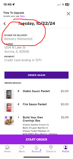 Very disappointed on my order. I have order Dorito Loco tacos for my children TODAY DEC.30 2020. I got home as i open them up to give to my children the tacos look soggy and falling apart like they where old Tacos from a day ago. So i call Taco bell and told the man they gave me old taco. He said he made them up and we where taking long on the order so they got like that. He basically new exactly who i was without asking for a order number. Hard shell tacos supposed to be hard not soft so by him saying we took long that a lie! Sound like they try to retaliate. The cheese on the tacos were melted and shell was stuck to the paper like they warm the food up in the microwave. I no what old tacos look like. But the Lord going to deal with that Tacos Bell and that person who gave out old food. With all this covid-19 going on they should be ashame of there selves. Food not...