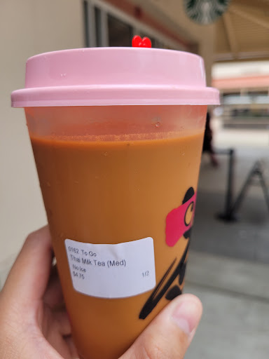 Secondly and most importantly, the lid doesn't make water resistant seal with cup. Whenever I tip my cup to take a sip, tea spills out. There is no excuse for this! Don't bother with a custom printed cup and heart themed lid if a regular Dixie cup and lid does it better. How a drink business with three locations overlooked this is beyond me. I've been to milk tea places all over the country and high end teahouses do not have this problem.