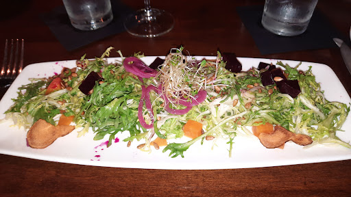 Read moreIt's called a tavern so you expect tavern food which is what you get, but then you see the prices and you expect the menu all to be elevated, which they do sometimes. The walleye was well cooked, but underseasoned, the burger was clearly high quality ingredients, but the dressing on the arugula kinda took over, and I'm no expert on lemoncello, but it seemed far too sweet to me. The highlights were the crab cake, the garlic sea salt fries which weren't over garlic-ed for once and the fantastic corn risotto that came with the fish. So the appetizer and sides were the best thing we got. I may have had too high expectations, but felt a little let down since everything looked and sounded like it would be amazing. It could be because the clientele they cater to appears to be a well-off retired community (nothing wrong with that, but it might explain the lack of seasoning and sear). I will try it again, though, because they had a really interesting menu, both food...
