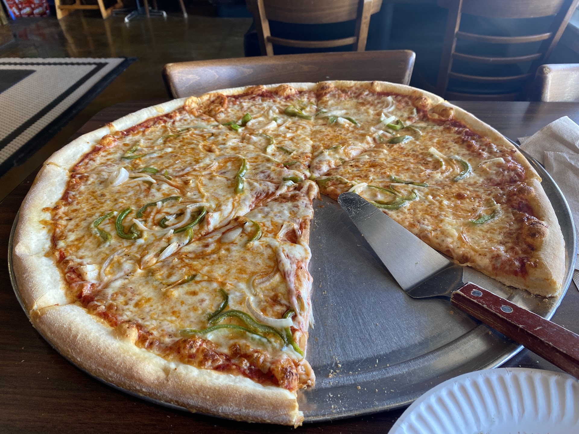 Read moreUpdate 7/22/17 After the last 2 not so good trips we went for lunch before the rush today for one last try. Ordered a large and it was on the table in about a half hour. It was HUGE and pretty good. Not great but good and they may be winning us back after today. I will move it from a 2 star up to a 4 star after this trip. Use to love this place but not so much any more. Last pizza we ordered Small Half & Half that was $17/$18 after toppings not counting the tip I gave them. It had almost no sauce and very little toppings. I noticed a sign that says pay for extra sauce. Is that why you don't get sauce unless you pay more and still pay $17+ for a small.So the girlfriend complained and the owner offered a free pizza to try them again. Very nice of him. So we ordered the pizza tonight to go. We got their about 15 to 20 minutes later. After about 15 minutes my girlfriend asked when it would be done and she was told they were making it now. What? When we got there they said it was in the oven now they are just making it? They said we did not say that and we both herd them say it was in the oven. I said you really want pizza? She said yes so I said I'll be back then. I went to ace and then home, Dinked around and went back just in time for her to be waiting with the pizza. This time the pizza was good like it use to be. I say eat at your own risk. You may or may not get a good pizza and you may or may not get it within an hour. Will be eating pizza elsewhere now. Use to give it a 5 star now I would say 2.5 Not worth the wait or...