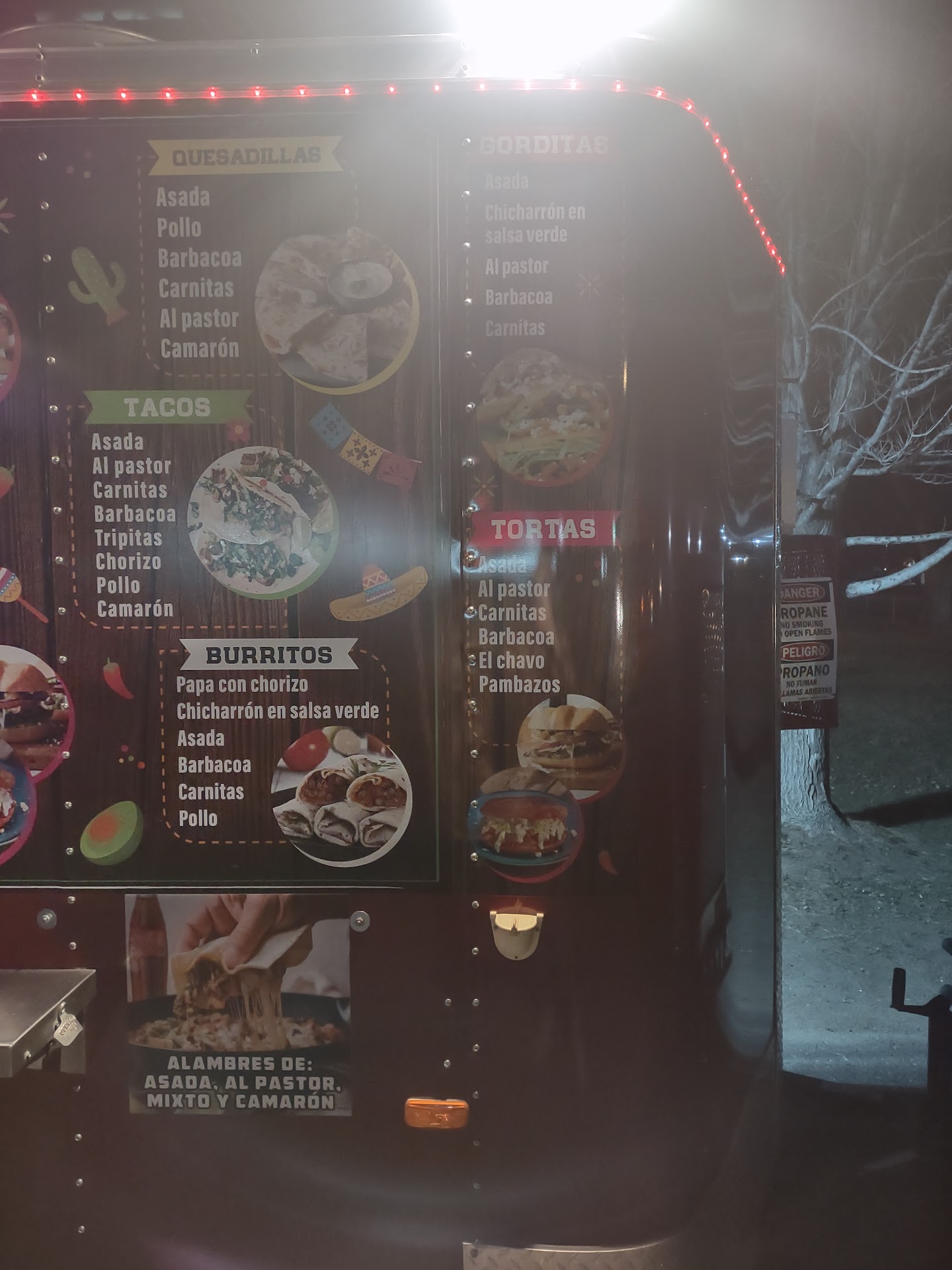 These folks comes out around 4 pm and will still be open close to 10 pm (possibly even later than that, it's just the latest I've seen). It's also one of the only mobile spots that has shrimp items, alambres, and tinga chicken as a protein option.