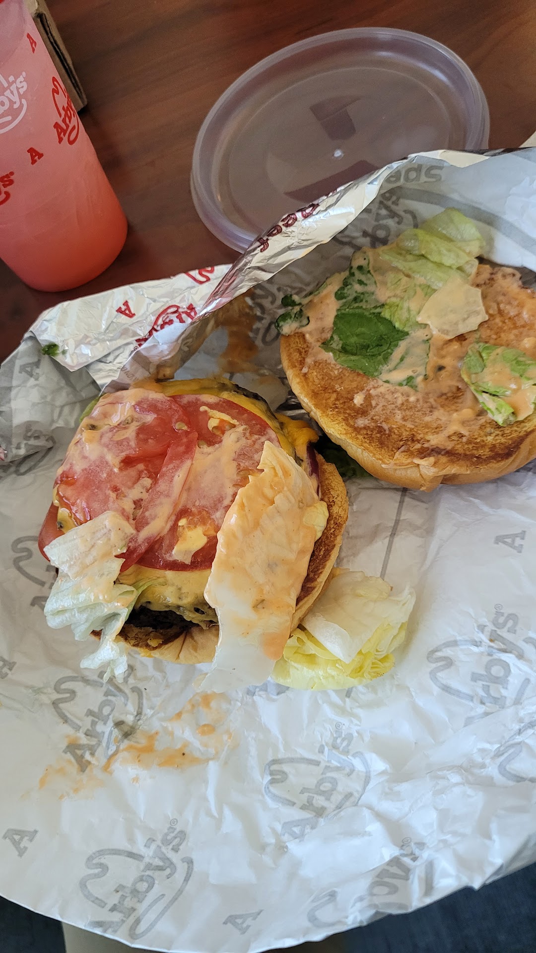 Read moreI'd be scared to go back. See photos and receipt shows what I ordered. Curly fries tasted like fish so I'm sure that's why the fish was cooked within any inch of it's life and one filet was their spicy new filet. It was seasoned too heavy. I asked for easy tartar sauce and they gave me like none. The sandwich was flatbread with poor looking lettuce and the deep fried fish filet. The other filet was normal one with same wilty lettuce and filet sans tartar sauce. Worse part was the young kid in the photo was chatting away on his phone while waiting for my food. Adjusting his cap. Stuck phone back in his pocket and then took it out again and stepped away from counter after pushing away mop bucket. Came back to finish putting my order in the bag WITHOUT WASHING HIS HANDS. Disgusting. I should have declined the burger but I was curious how food was going to be prepared. Last time I ate at Arbys was over 10 yrs ago when my daughter got food poisoning and was in hospital for 5 days. I boycotted the other arbys where that happened. Thought oh things have changed ill try again. Wrong. Don't eat here....
