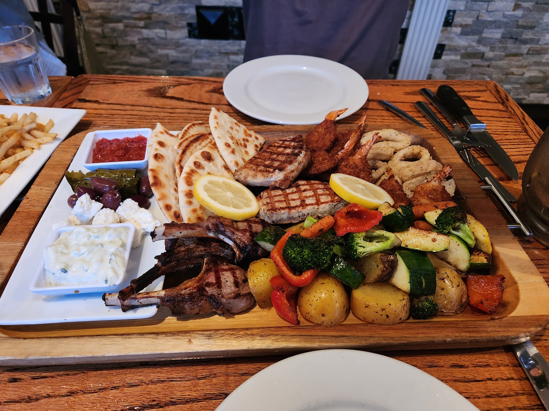 Upon entering Athenian Restaurant, you're immediately embraced by a warm, inviting atmosphere. The decor exudes a rustic Greek charm, with intricate murals and picturesque landscapes adorning the walls, softly lit by traditional lanterns. The atmosphere is reminiscent of a quaint taverna nestled in the narrow lanes of Santorini, and it is delightfully refreshing to be enveloped in such authenticity so far from Greece itself.