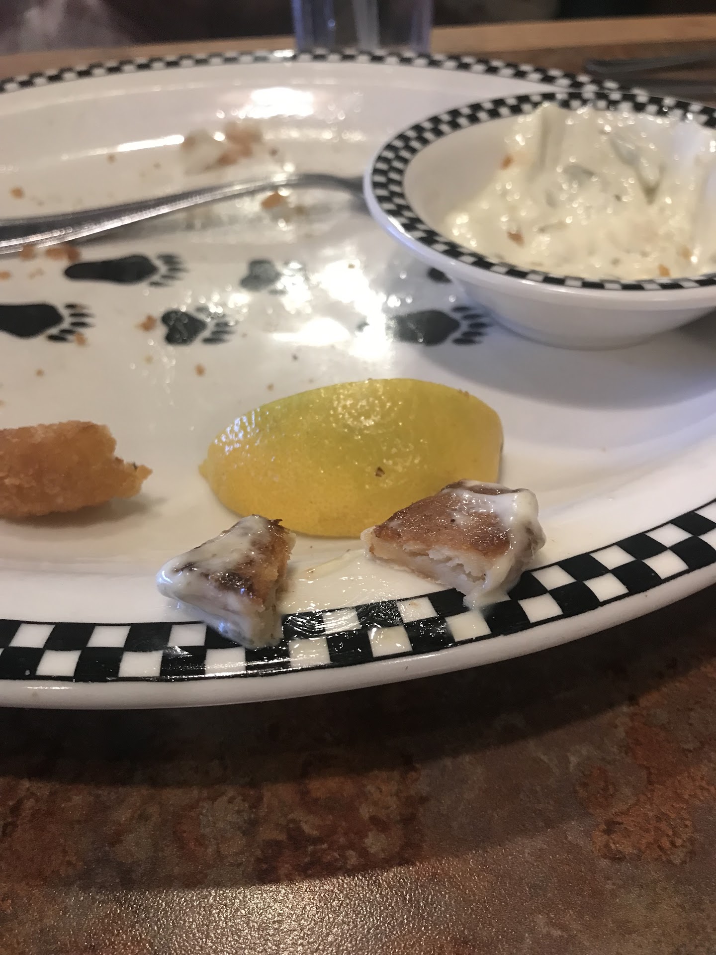 Return trip to Black Bear diner. When I first went to the Black Bear diner I said it was way way overpriced and I still agree with that first statement. But after we spent $32 for breakfast they wanted us to come back and gave us $20 in Bear Bucks towards our dinner. Well we went back and the food was better but we did not order breakfast because of our last experience. I had the chicken avocado club sandwich and it was good and they give you tons of fries with it, my wife had fish and chips but substituted the fries with onion rings and yes they were good. The coleslaw was a little different. The weird thing about the fish is when they gave her tartar sauce there was a lump in it and it turned out to be a fried potato. I worked in a restaurant business before and I can only figure out a couple of different things and how a potato got in there and Iâm not going to assume so I donât look like an idiot, but you figure it out. I have been on the road for over 32 years with my occupation and I have eaten in a lot of restaurants so I feel that I am qualified to write a review and I know one thing, we will not return. You can get the same food across the street at a place called Rosies for about $10 cheaper on the total ticket. Next time weâre going back there. Thank you staff of black bear diner and the waitress again was very good but I donât go back just for the service but for the all around experience and price. Below is a picture of the potato we found in a tartar...