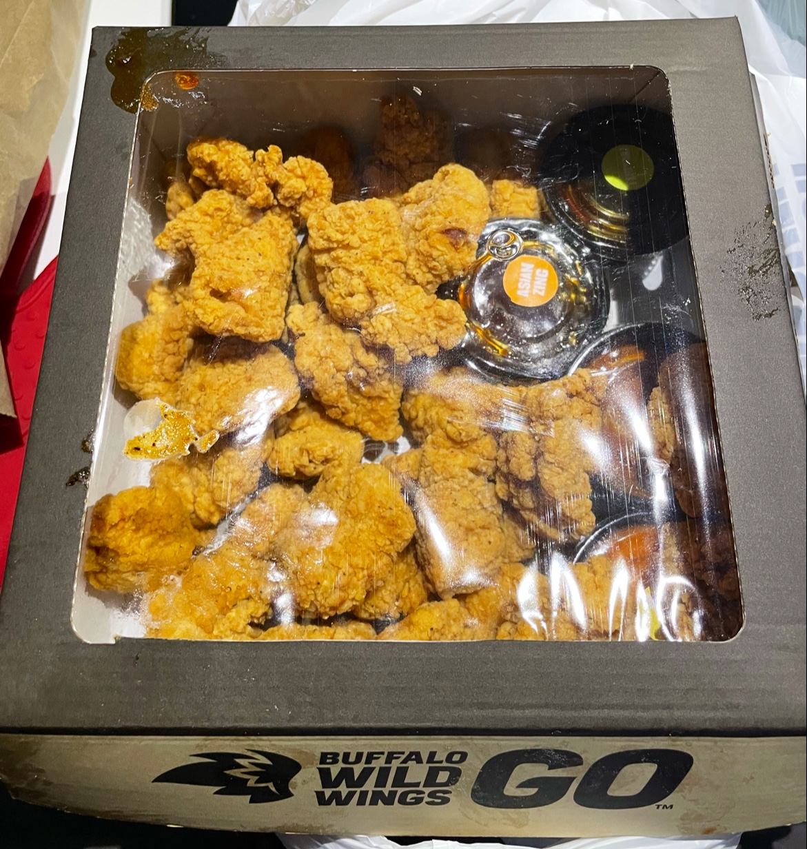 Good grief. Where do I start? First off, let me state I went in for an order I placed on the B-Dubs app. This place is a hot mess. I showed up at the time my scheduled order was due. I waited at the pick-up counter for over 5 minutes before a staff member acknowledged my presence. I locked eyes with no less than 3 servers, all who ignored me and continued to do anything but acknowledge my presence. Meanwhile, 5 people came in and waited to be seated. Finally a staff member came over to me; he said he was a manager. There phone was ringing. He answered the phone and told the person to hold. He printed out my order ticket, and told me to wait while he went to check my order in the kitchen. Then, he went to the reception area and sat the people waiting in the lobby. Meanwhile, the person on hold rang back on the phone. I never saw if the phone was picked back up. About ten minutes have passed by now and another server comes and said they had a question about my order. Insert eye roll here... To me, this means: they haven't even started my order. Oh, did I mention that I had my 13 month old daughter with me? This should've been a simple pick-up run... And now it's turning into a whole restaurant experience. Said server leaves to go back to the kitchen to clarify my order to the chefs. She comes back and I pay. Surprisingly, this process went smoothly. She was very patient while I used coupons and gift cards to pay for this lunch meal. And I know, I know.... This totally makes me like a coupon mom freak - the one that everyone dreads. But the server was patient and helpful. She had to ask about server for a pen, because there wasn't one for me to use to sign my receipts. Once again she disappears to the kitchen to receive my order. Ok - I leave and return home. Opened up the order and the wings are soggy, the skin only lightly fried, we're missing some dipping sauce that we paid extra for and some of the pre-cut veggies are fridge rotted (think spongy with black tips where they were cut). Soooooo.... Yeah. Hot mess. Though, to be honest, I've never walked into a well managed BWW.... I've almost always run into poor service, dirty tables, and hit or miss food. This location is no different - other than it has the added annoyance of being in a crummy location with limited parking. Sigh. I hate to rag on business, and I try very hard to be patient, understanding and compromising. I've worked in n the service industry and I know that sometimes everything that can go wrong does go wrong. But this was a whole journey of disappointment. And what should've been a simple pop-in/pop-out ToGo order took me an hour. I'm bummed. Wish it could've been a better experience. Especially for $45...