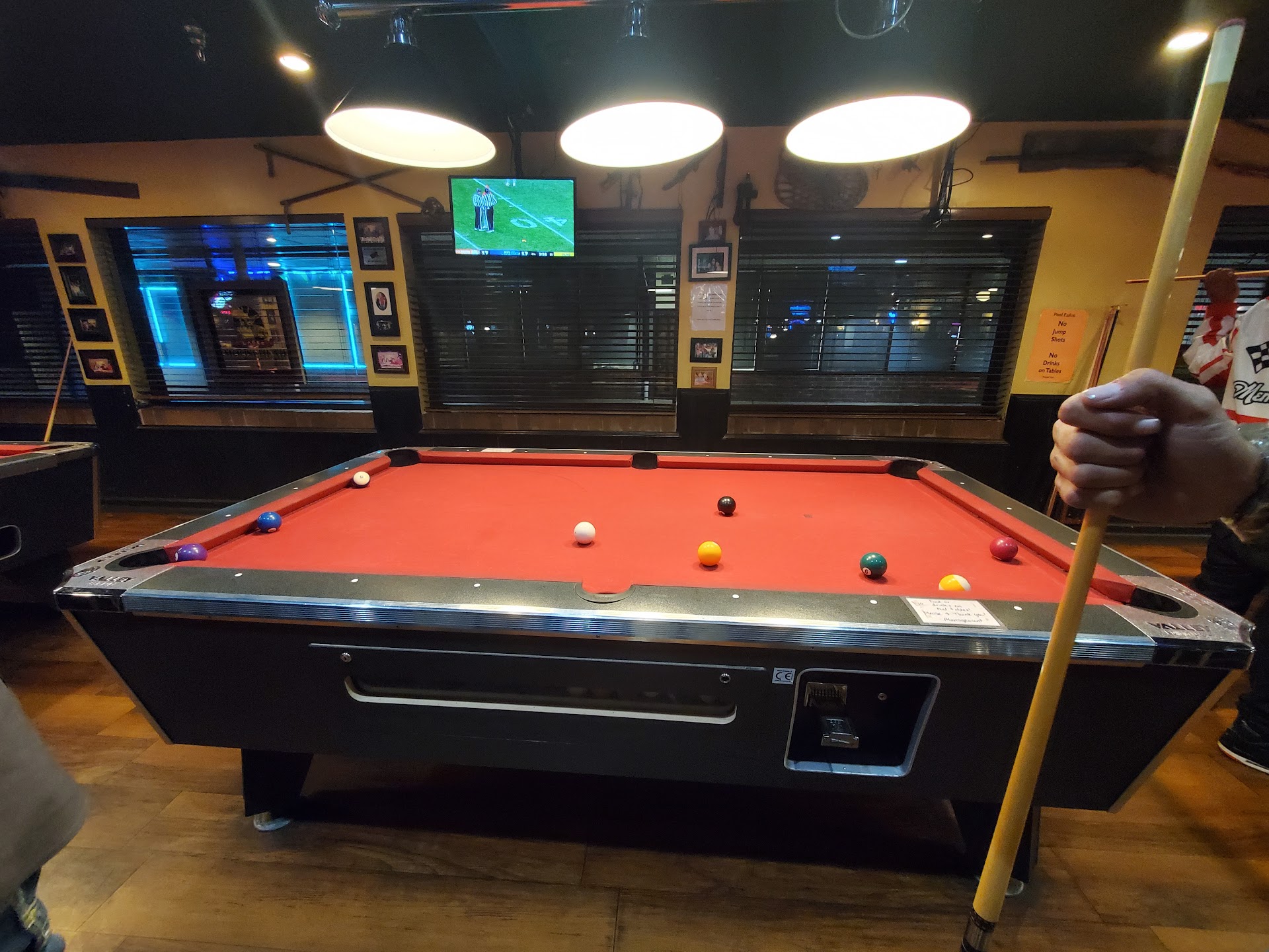 The only reason that service is getting a three is because of the gentlemen that helped us on 4/11 otherwise there would’ve been nothing positive to say. Otherwise, the experience was terrible. My partner and I came in just to get a few drinks and some wings. We walked inside the restaurant at 5:09 exactly. We waited at our table with two female waiters watching us for a good 20 minutes before we were even “greeted”. We paid for pool even though the waiter came over and said that it was supposed to be open and free the whole time. We finally got to ordered drinks, we ordered our food at the same time. About 15 minutes after a couple walked in, two chairs down on the open ended table along with us. They received their food and drinks before us, finally we said “let’s wait 10 more minutes and if the food doesn’t arrive we will leave” ten minutes later. An hour being in the restaurant. We decided to leave because our food still hadn’t come.