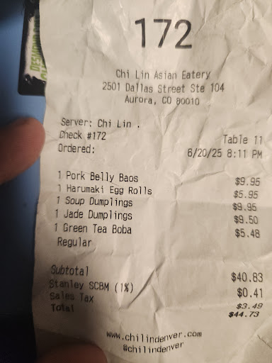 Read moreBe on notice that this place closes at 9:00 pm on a Thursday. We arrived at 8:30 pm with a party of 4 adults and 3 children. We walked to the counter to place our order and the hostess asked if we wanted to eat in or carry out. We told her eat in not knowing they closed at 9:00 pm. As we sat for 5-7 mins.before a waiter came to take our order, he promptly told us that they close at 9:00 pm which was now news to us. Not knowing what to do next we proceeded to give our order. The food came out relatively fast and everyone was eating by 8:50 pm. At 9:00 pm promptly a young hostess came and asked us if we wanted boxes and bowls to carry out our left-overs while other servers started turning off the lights and washing the floors. By 9:05 pm our waiter started hovering around our table. (Remember the bullies from school?) It was at this time we finished boxing up our food and left. The food was good and we’ll eat it as left-overs tomorrow for lunch. If a food establishment wants to close promptly at a certain time then I recommend they have cut-off time for seated dining. In this case, they should have said, “we close promptly at 9:00 pm we are not seating diners at this time. We would be happy to provide you a take-out meal.” Finally, there are thousands of dining choices in Denver and the Metro area, don’t waist your time at Stanley Hall if it’s close to closing or you are likely to be chased out by a...