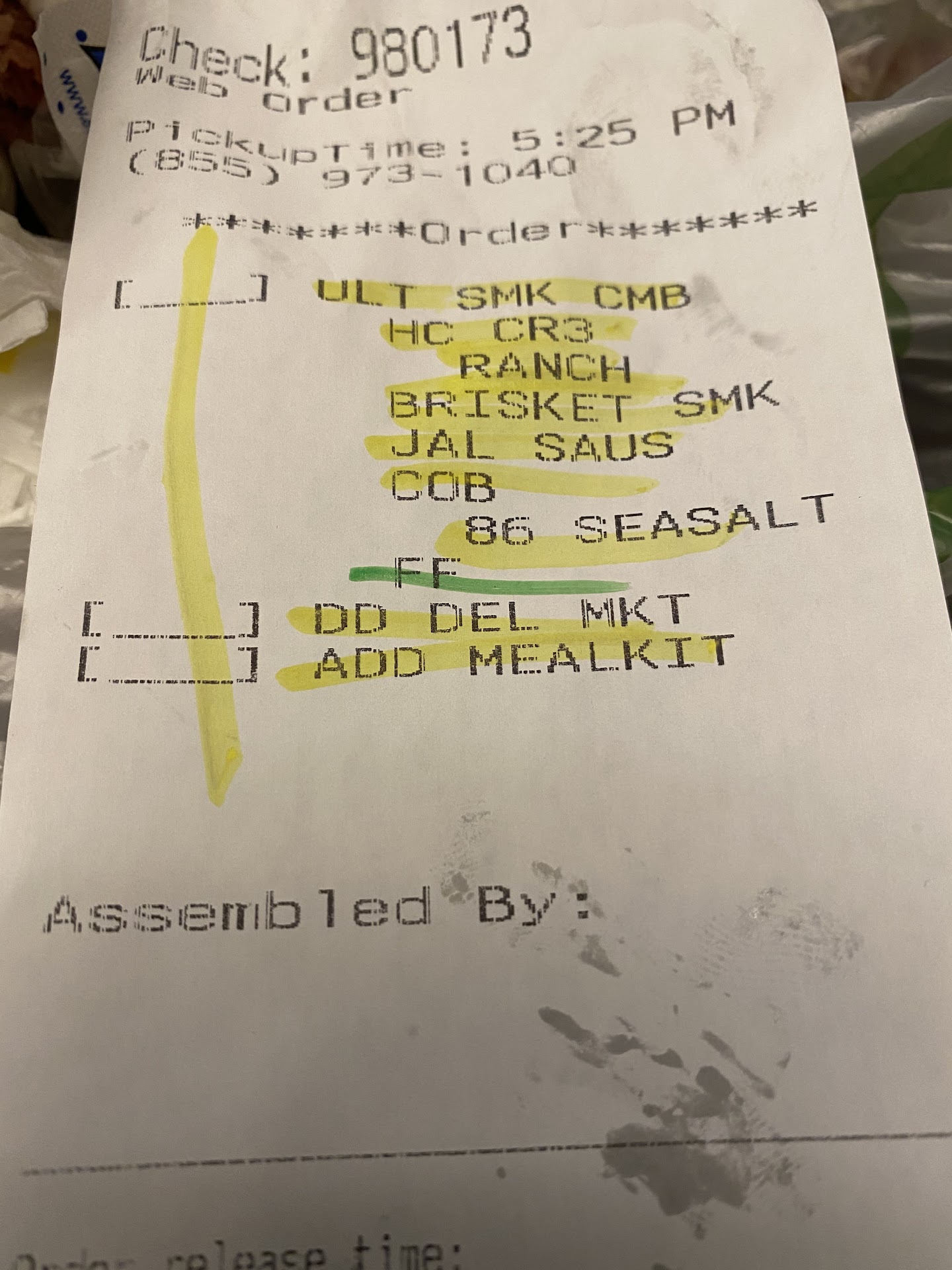 The Bad: BRISKET and side of ranch was missing, the potentially best part of the meal was no where to be found š¢. I assumed the driver did not steal it as everything seemed sealed. Wish there was a tamper tape on the container so I know the driver didnāt touch it. So for now it is Chiliās mistake. Called and did speak to Jennifer who did try to refund my money and was not able to since I used a second party app. She will send my information to corporate and they decide how much should be refunded. Jennifer mentioned to contact DD and ask for a refund which I plan to do. That will cost me more time. I donāt understand where the quality control is when times are tough and you would assume a business would triple check something going out to a customer from a second party app. There is also a spot on the receipt to show who created the order and it is blank. No accountability, no responsibility just equals bad service here. Good luck if you choose not to visit the restaurant itself and use a delivery service. The employees do not seem to care enough to make sure the orders are correct. Disappointed.
