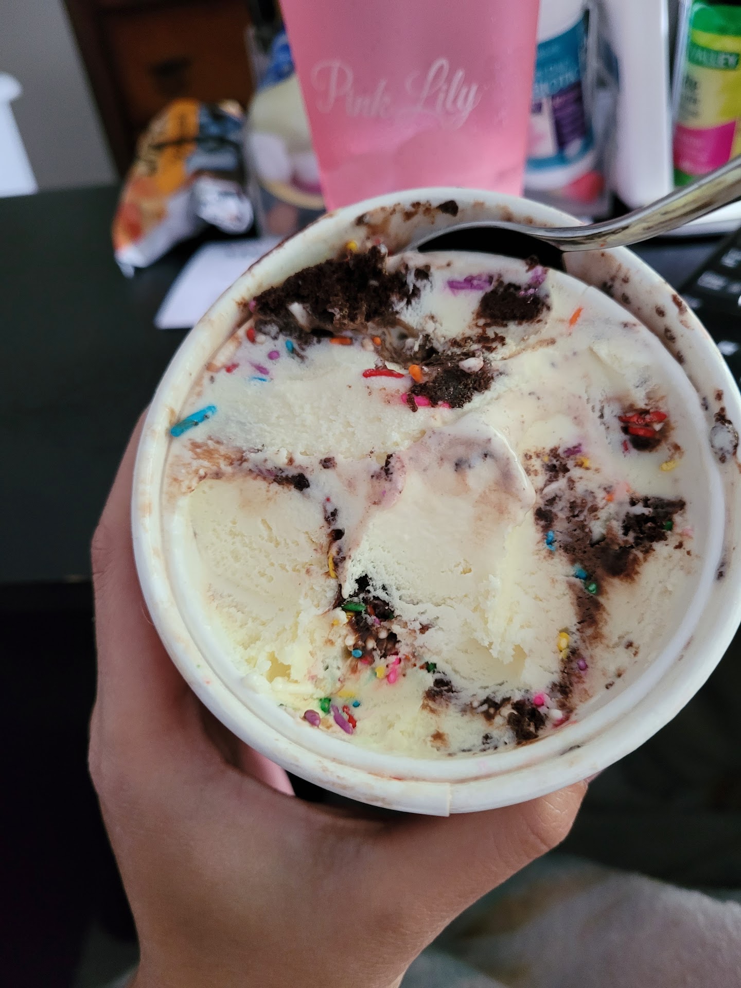 The ice cream part of the cake is great as usual. We just have to cut the cake part off and discard it.