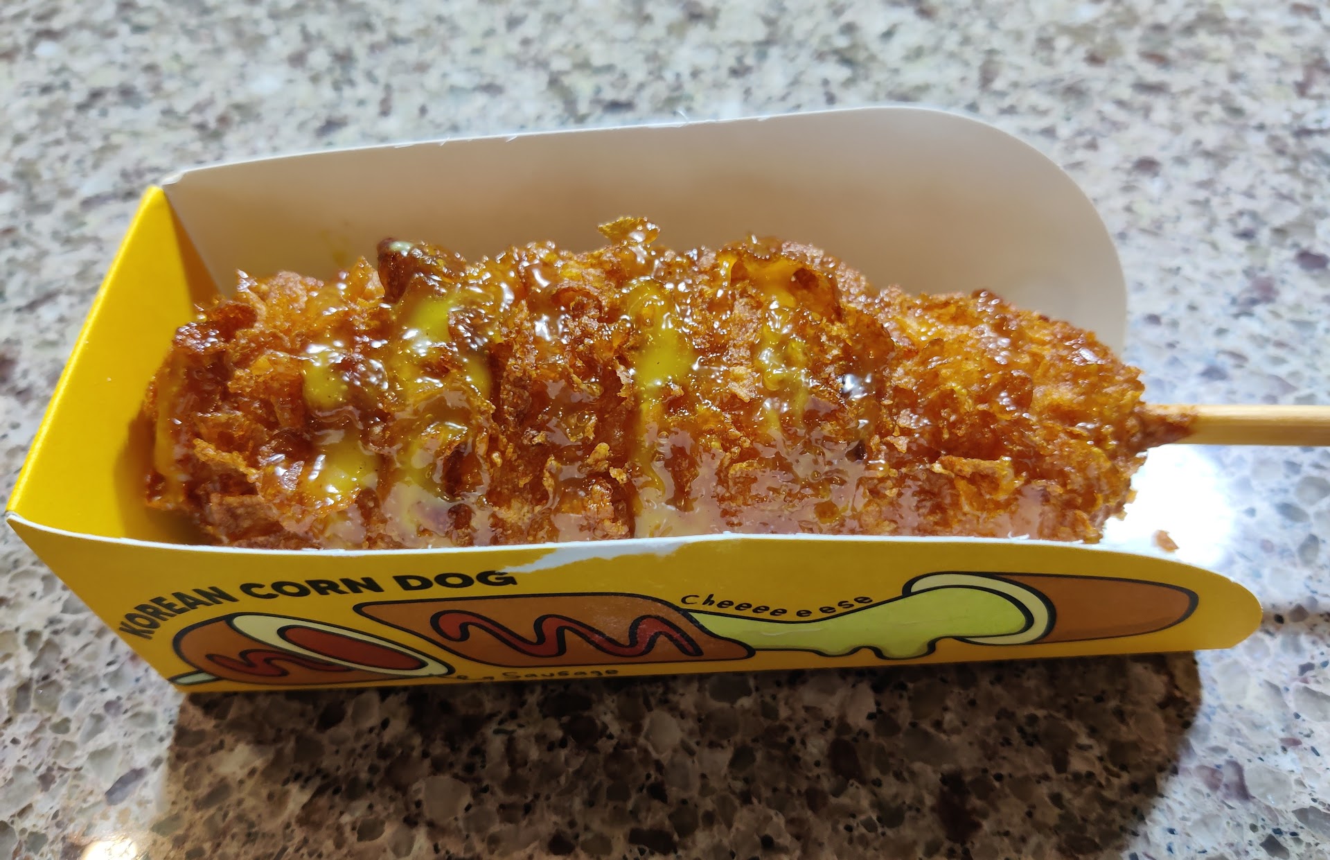 This place is pretty good for a quick bite. It's Korean fast food, so don't expect anything gourmet; but, some of their bites will def have you coming back for more. The setting is pretty small, a bit cramped, and a little lackluster (def not a first date spot). You can order yourself on a screen or 5 feet away by register. Their service is always friendly, and with a new managerial change, it has gotten even friendlier. Sometimes their service can be a bit slow, but with the new change... we'll see. MENU: The cupbops are a mix of glass noodles, rice, cabbage, a dash of sesame seeds, your choice of meat (I like the Rockbop - tangy fried chicken, for that crunch factor), spicy mayo, and KBBQ sauce. (Get it about a 7 on the spice o'meter if you like just a dash of spicy kick) The Ramen is "eh" and def not the best. The broth is pretty decent, though, and they advertise it as such. I prefer black ramen with pork (black ramen is always my go-to). However, the meat they use just isn't right for ramen. Tonkotsu is the only way to go for this style ramen, and you won't find any of that here; just some pre seasoned pork that has no business in a bowl of ramen. You can add an extra egg, sprouts, and other light fixings to personalize the dish. What you hav'ta try while you're here: KOREAN CORNDOGS! You can get them as cheese, sausage (hot dog), or half n half. For a sausage dog, try it with normal batter (mochi batter rolled in panko, then fried) with ketchup sauce, and if you want it a bit sweeter, add sugar drizzle. Either way, YUM! For a cheese "dog" (it's a giant cheese stick but better) it also starts by being rolled in mochi batter, but then: if you're in the mood for sweet, get it rolled in frosted flakes or whatever other sweet crunchy topping they have available. It's finished with drizzled sweetness to match. If you want it more savory, go with the original batter and panko mix and the original sauces. If you like potstickers, Korea has a pretty tasty take on those, and they're available to order here. They used to have Kko Kko Sticks, which are BBQ chicken or fried chicken skewers, and those were friggin lish! (Please bring them back😭!) They have a small assortment of Korean and American pops/drinks to...