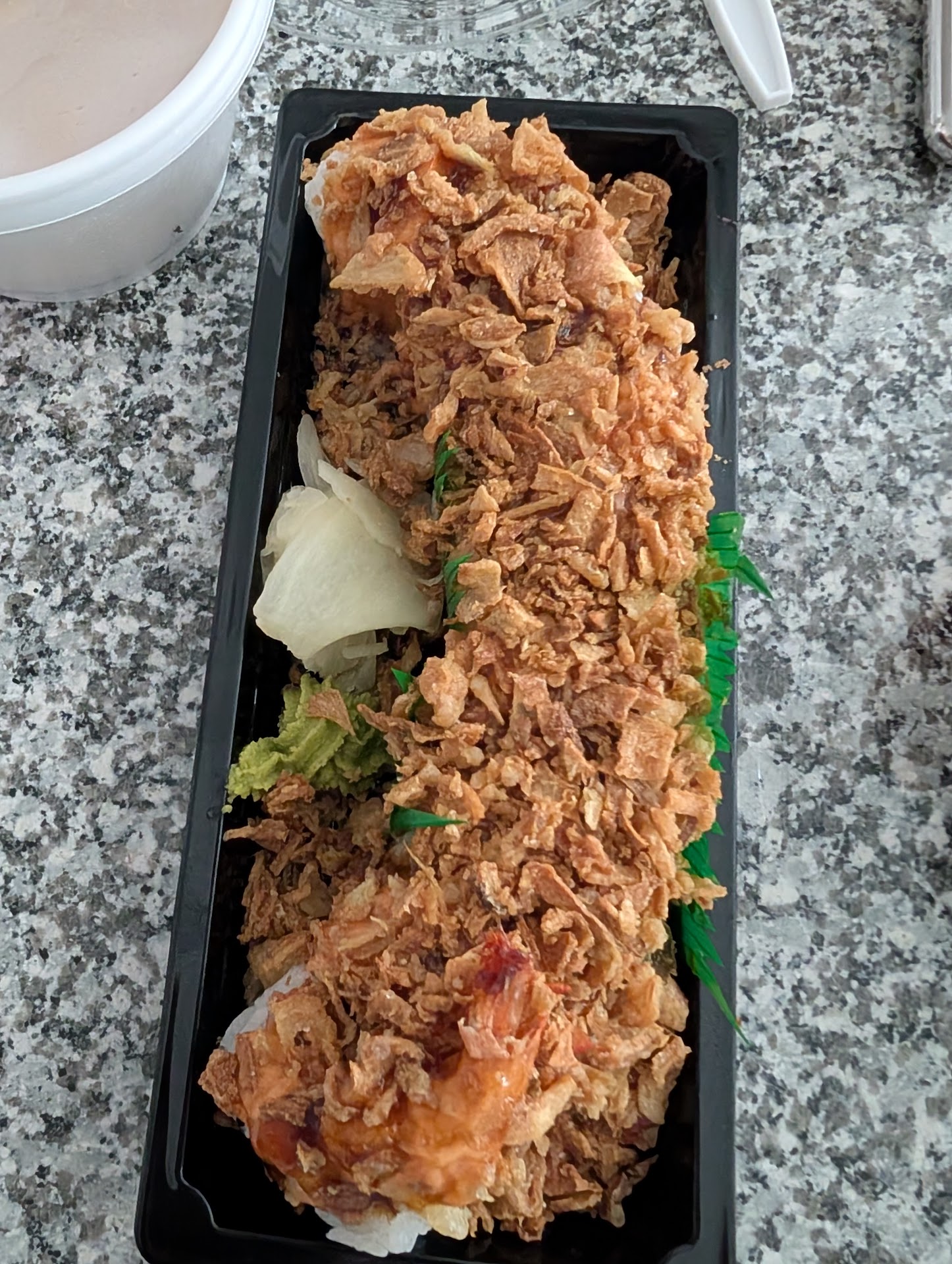 Read moreEvery time I pass by this place it always empty, maybe people don’t know how good the sushi is!! Had kimbap for the first time and I was so amazed!! My niece who was scared to try it at first loved it! The Shrimp crunchy roll was AMAZING! The cake they had was also my first time and it literally melted in my mouth!! It was that GOOD! The owner taking my order was very patience as that was my first time, he’s very respectful and helpful. He’s very welcoming and amazing personality. Atmosphere was clean and organized. I will definitely be...
