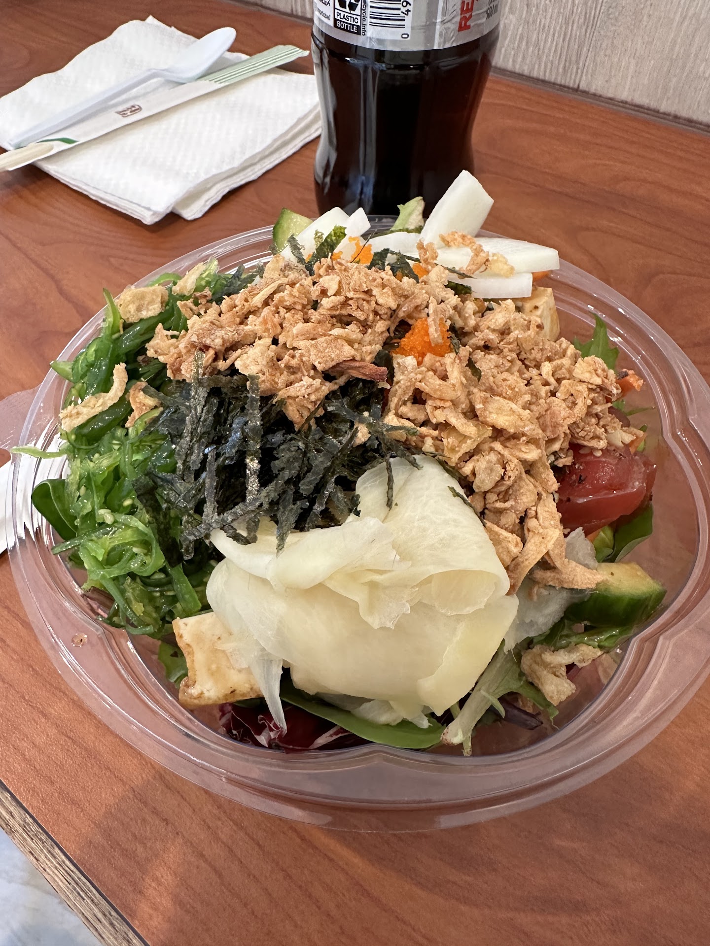 I waited roughly 20 minutes for a poke bowl and one roll. There was one person in front of me waiting for food. Why does it take so long to put together cold raw food? Who knows. There's so little bit of poke in the bowl I can practically count them. The rice is way too mushy for my taste. Felt like I was eating balls of rice instead of grains. I wanted crab salad as a topping for my poke bowl. Either they're too small to see or non-existent. Not fresh fish, then again I'm not surprised. My expectations were low but this place managed to fall below...
