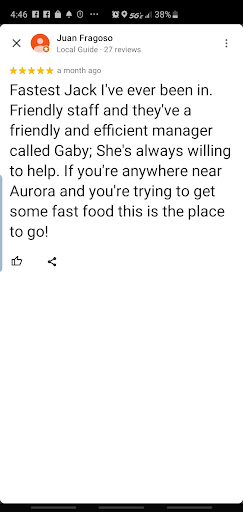 Read moreI literally just left the jack in the box.it took me 35 minutes to get my food because the first girl dropped my food outside the window while handing it to my boyfriend.then it took them forever to even bring me my food out which they never did so I went in and got my food and they were still cooking one of my burgers. When I went through my bag they had given me to medium regular fries when I ordered a number three with a medium curly fry with a medium Fanta lime and I ordered a number 11 large with a regular dr. Pepper with no ice two tacos and two 5-minute churros.... But he argues with me and has me hand them to him, Noel the manager, and then throws them away then after several other disappointing events happened like he giving me two large curly fries even though I told him I wanted a large regular fry and a medium curly fry he then calls me unbelievable because now at this point I'm furious and banging my hands on the counter cuz I can't believe he made me throw away the two medium regular fries and I have to wait for a third time for them to fry more fries instead of letting me have the two mediums and throwing them away in the trash can in front of my face when I asked them not to please waste food. so then I asked for the GM's phone number and he gives me a non-working phone number....so if the GM of this Jack in the box reads this...