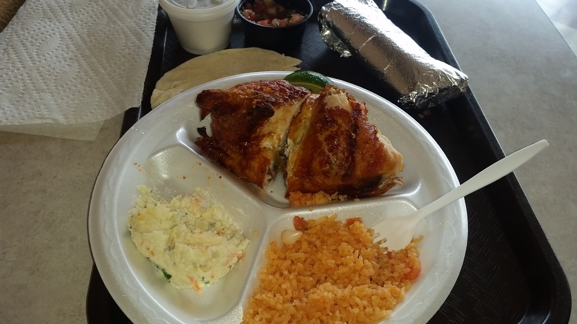 Read moreI always pass by this place on the weekends. Tonight, I was running late so I decided to stop and try it out. I got the Dinner Plate Combo for $7.99. Half Chicken, Rice, Potato Salad, pico de gallo, and fresh tortillas. The food was delicious. The chicken was moist and had a lot of meat, great flavor for the Potato Salad, and pico de gallo. One of my coworkers said that it was good and he was right. A great place to bring the family or sports team after a game or church. They're open daily from 10:30 am to 8 PM. Went bought a whole chicken and thought that the...
